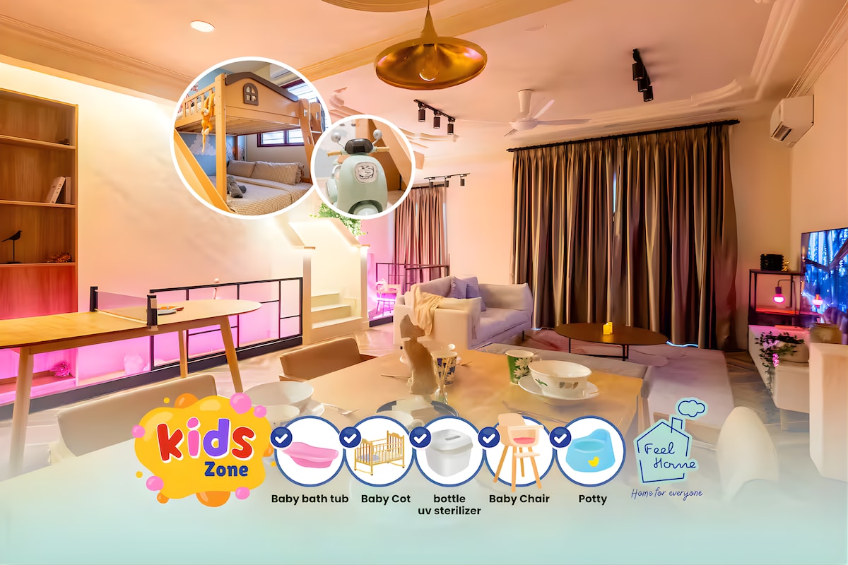Welcome to a cozy, newly renovated home perfect for family stays. Designed with families in mind, the home features generous common areas for quality time - whether you are watching movies, cooking, sharing meals or simply relaxing together. There are two living spaces on the two different floors with smart TV. Walking distance to HELP University and just 7 km from Subang Airport. Ideal for family stays, short visits, or university guests. Comfort, convenience, and space — all in one place.
