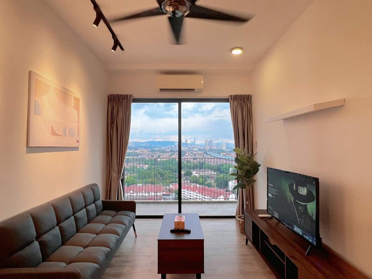 Enjoy a blissful view of the lush greenery and beautiful sunset with the melody of chirping birds while you're staying here. This space is located just 3km from The Curve, Ikea Damansara, and the MRT station. 1 dedicated parking bay in the basement for FREE. This unit is ideal for a staycation, business trip, or even just to take a break and breathe. It's a perfect place for you to relax and enjoy the city life while in your own space surrounded by nature.