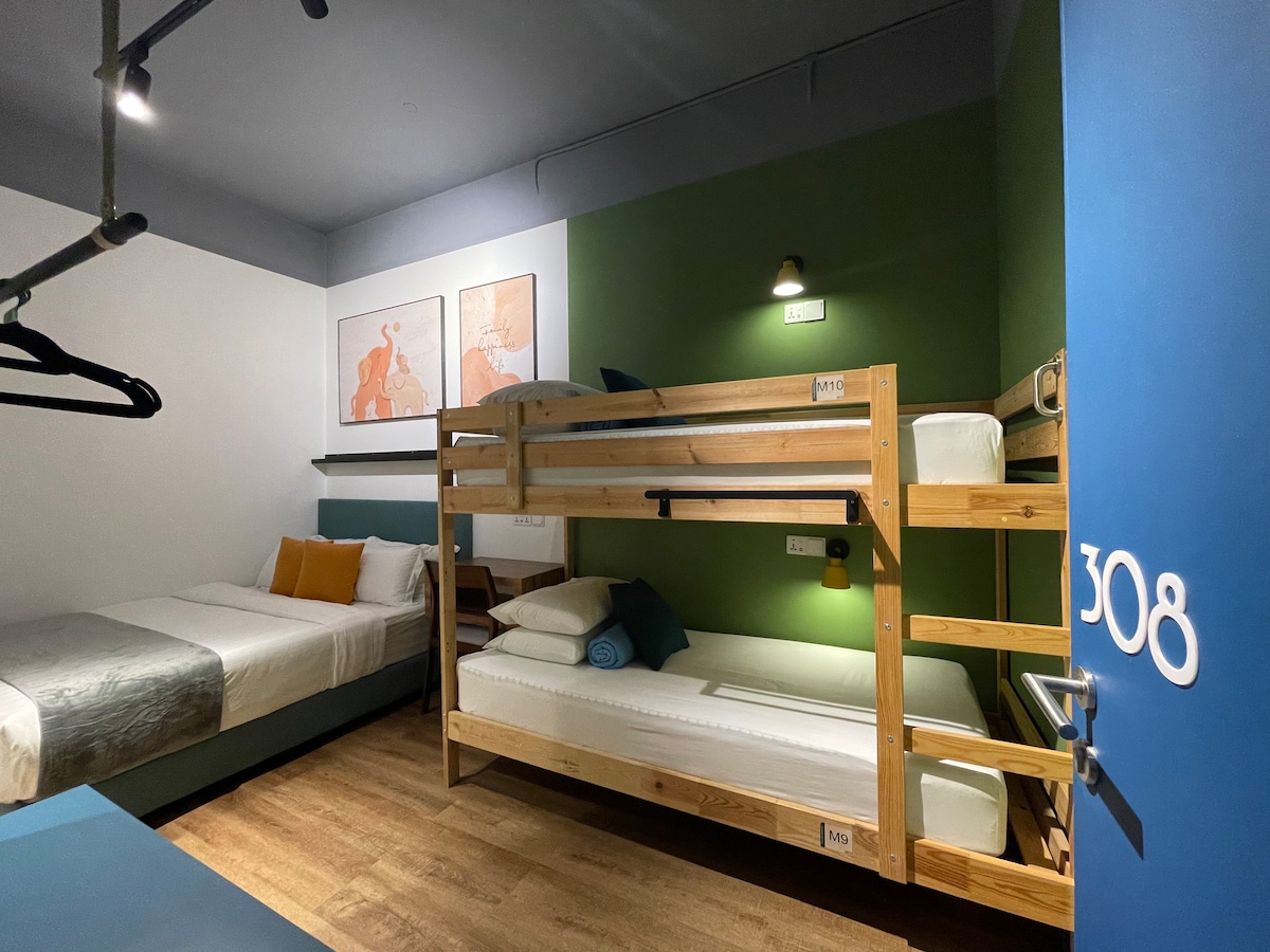 家庭客房,共用卫生间,可容纳4位房客