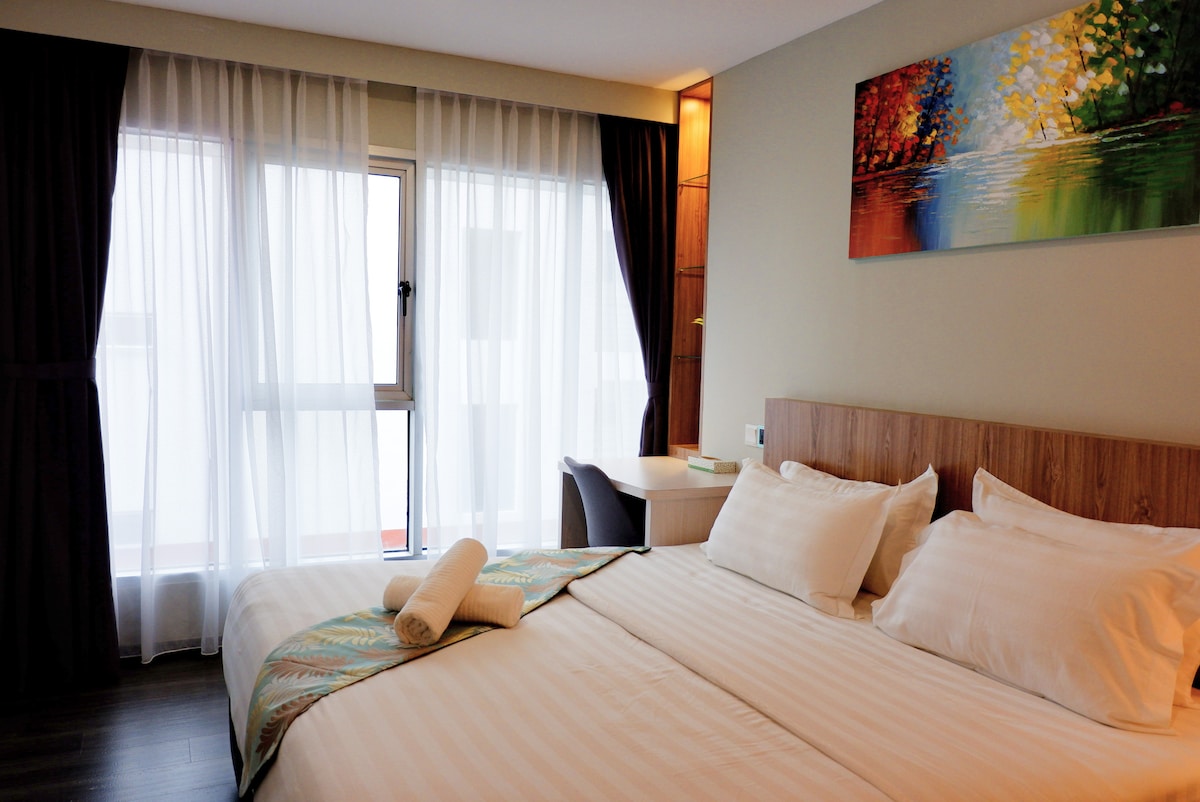 Master bedroom with a separate living room and a balcony with a fantastic calming view. Located at a 4-star Hotel at Gaya Street, the central spot of Kota Kinabalu, within 3-minute walking distance to Suria Sabah, Jesselton Quay, night markets, and Sunday market, numerous must-visit top local restaurants such as Shoney's and On 22, also equipped with 4-star hotel facilities, Kota Central Stay will be a perfect place for you.