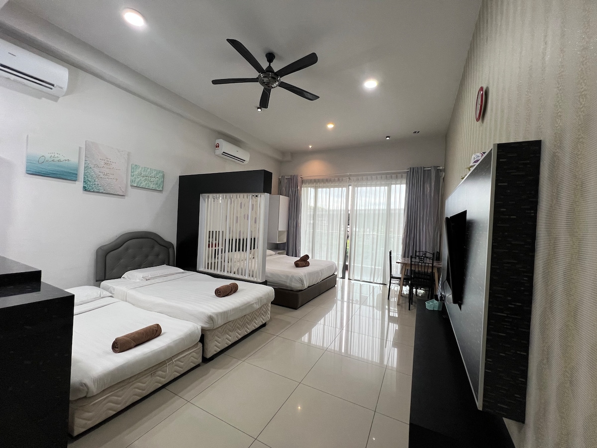 Located right above Imago Mall, our studio gives you the easiest access to food, shops & everything you need. Ideal for small families, couples & business travellers who want comfort without the hassle, yet still prefer a quiet, cosy retreat after a long day in KK What Makes YuMa a Guest Favourite; 1. Garden-view balcony with direct outdoor pool, gym & playground access 2. Private lift & secure entry for smooth, worry-free stays 3. Quick access to KK’s best spots — Airport, KK city & islands