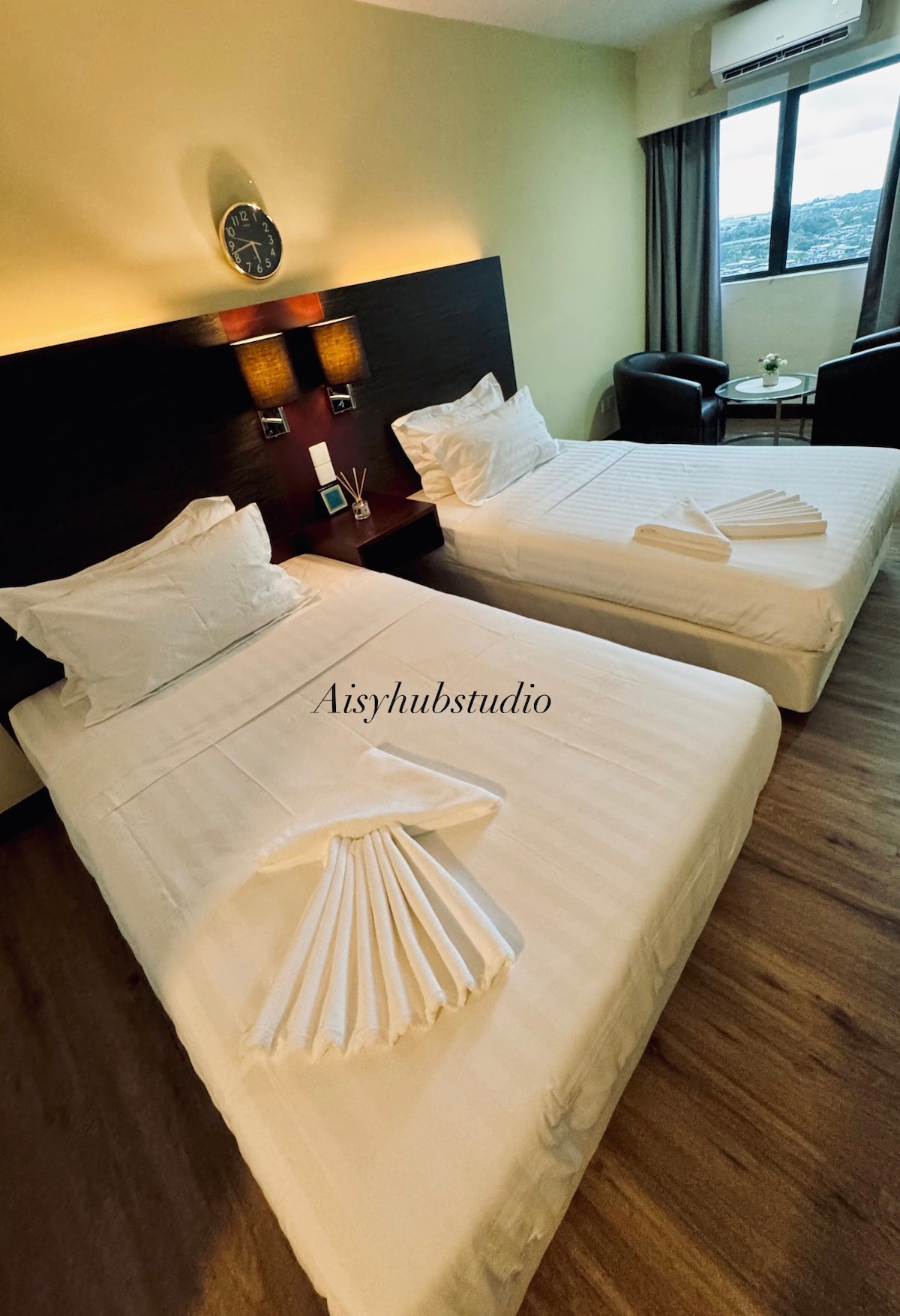 The ultimate holiday Airbnb unit, View of KK city, Gaya island, Sabah International Convention Centre. A romantic warm feeling of sunset view with a home living space, an elegant dining room, 2 beautiful bedroom and 2 modern bathroom, you'll have the ultimate suite experience. Spanning 701sqft, the Jesselton Suite also come with a complimentary Netflix, Disney Plus & HBO GO movie app for you to enjoy. 📌 6min walk to Jesselton Point 📌 9min walk to Suria Sabah