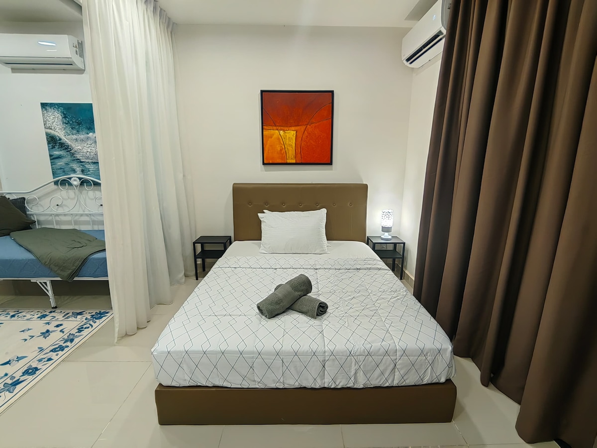 - 3KM to Airport - 2 KM to Tanjung Aru Beach - 5 minutes Grab (RM5) to Imago Mall/KK City -Netflix - Restaurant / Convenience Stores downstairs - Mini Freezer - TV - Towel,shower gel & shampoo provided - Hair dryer/Water Heater - Iron -Gym