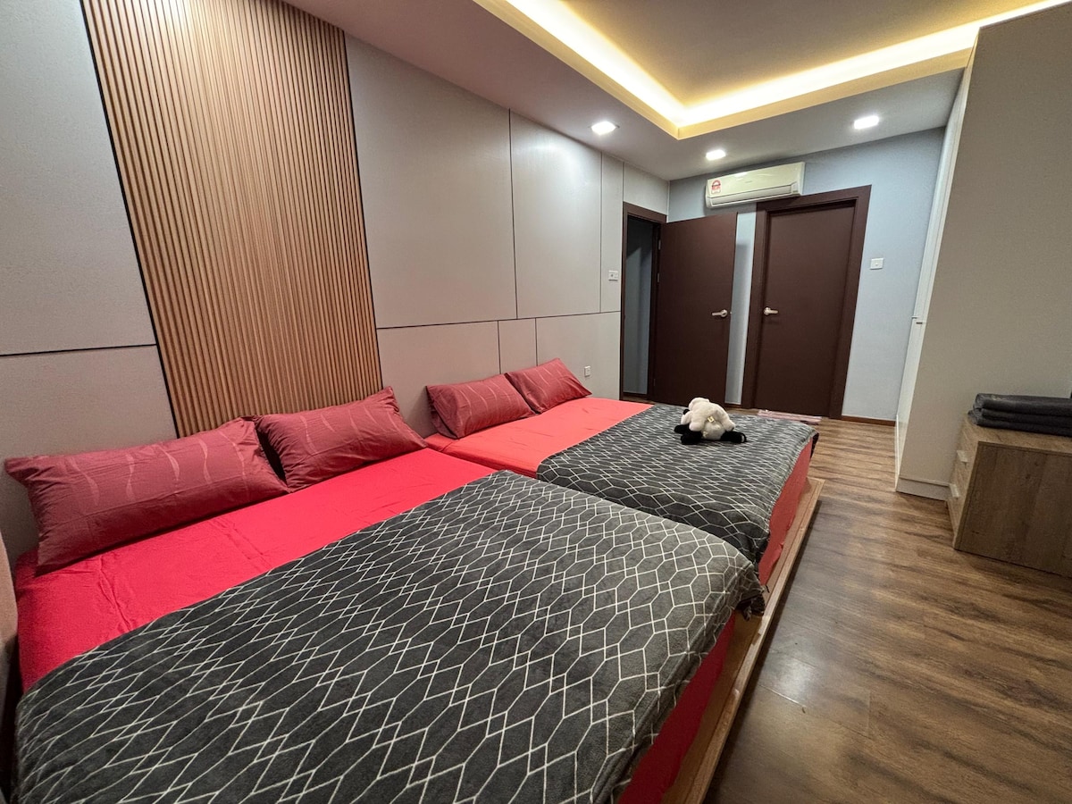 Enjoy a stay in our new & clean 3 bedrooms condo with 2 bathrooms. Free access to the gym and swimming pool. All bedsheets, pillowcases & towels are freshly laundered after each stay! Aeon Mall is just a 5mins walk away, with plenty of restaurants, bars, and shops downstairs. Driving distance to: *Timberland Hospital 5mins *Sarawak General Hospital 6mins *Borneo Medical Center 8 mins *Borneo Cultural Museum 10mins *The Spring shopping mall 10mins *Vivacity 12mins * Waterfront Kuching 10mins