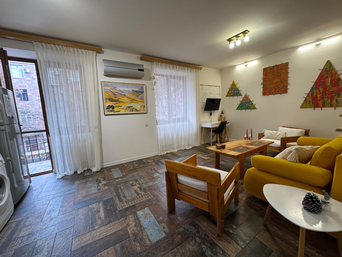 Cozy and modern apartment located in the heart of Yerevan, just steps away from the iconic Cascade Complex. Featuring comfortable furnishings, fully equipped kitchen, and a balcony with stunning city views, this apartment is perfect for a comfortable and convenient stay in the Armenian capital.