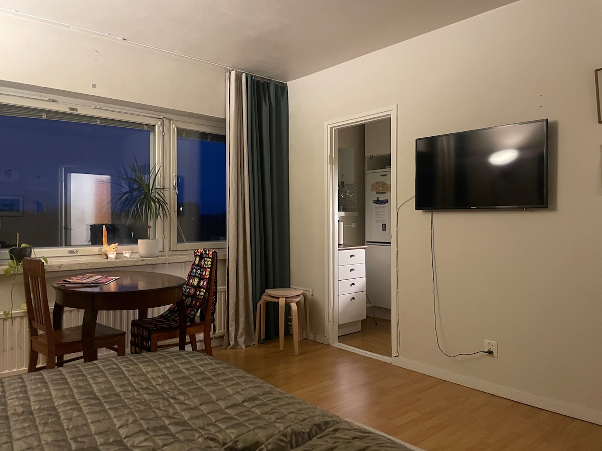 Äskettäin remontoitu, tyylikäs ja tilava yksiö keskeisellä sijainnilla kauniissa vanhassa talossa Kotkansaarella. Huoneisto sisältää kaiken tarvittavan oleskeluasi varten. Näkymä huoneiston ikkunoista aukeaa vastapäätä olevaan puistoon. Liinavaatteet ja pyyhkeet sisältyvät hintaan. Kadun varrelta löytyy maksutonta parkkitilaa.