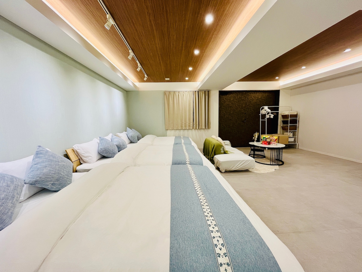 このリスティングは、3世代の家族や仲間と中長期の滞在を楽しむ拠点に向いています。 都心に近い静かな住宅エリアにある2023年オープンのアパートメントホテルです。周辺には水辺、公園、神社があります。 74㎡の広々とした室内は3つのベッドルームがあります。2台のセミダブルベッド、2台のシングルベッド、2組の布団、ソファーベッドがあり、大人7人まで泊まれます。(2歳未満乳幼児の添い寝は無料です。) 広いキッチン、全自動の洗濯乾燥機、広々としたサイズのバスルーム、独立したトイレは2か所あります。 アンドロイドTVやフリーWi-Fiの環境も整備されていますので、室内で過ごしたりお仕事をするにも充分な環境です。 ゲストに開放されたルーフトップでリラックスすることもできます。 チェックインは、タブレットを使う無人のチェックインシステムですので、深夜でも気兼ねすることはありません。ドアは最新式のタッチキーシステムで管理されています。 最寄りの駅(住吉駅・半蔵門線・都営新宿線)の出口から徒歩5分の場所にあり、近くにはスーパーマーケットなどがあります。