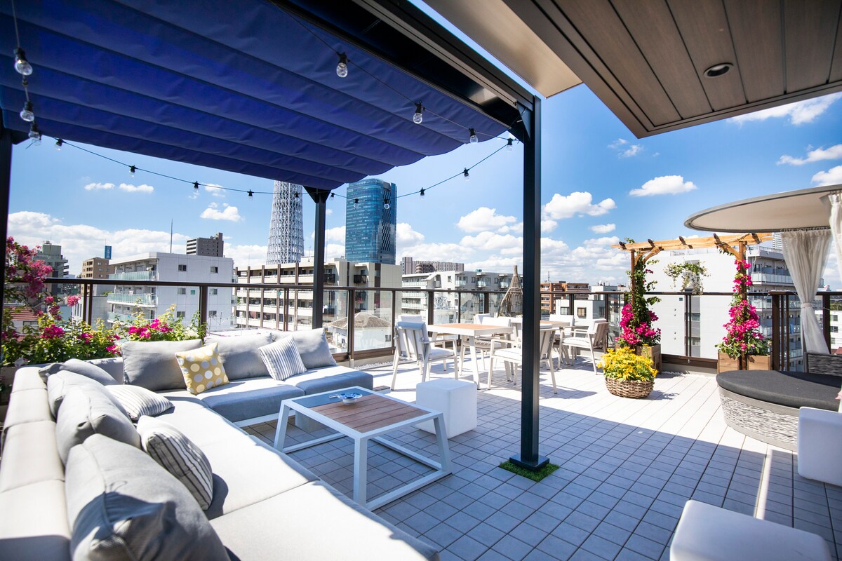 带露台大床房-可加沙发床/步行到地铁浅草寺/观光购物饮食一条街/可观晴空塔。