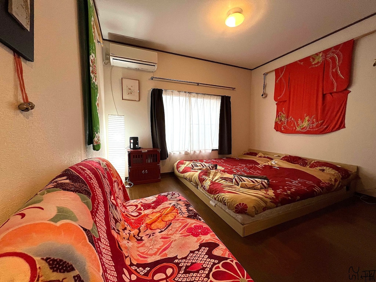 位于东京都江东区都营新宿线大岛站(s15)走路800m左右的距离。附近有「孤独的美食家五郎」推荐的日本三大商店街之「砂町銀座商店街」以及人少超美的樱花长廊,出片打卡的推荐地。 两层建木造一户建,和风旅馆。一整栋出租,一共3个房间,浴室卫生间分开,带厨房可做饭。旅馆内使用总面积约47平方米,大窗户,阳光明媚,有和风庭园式小阳台。1-7位可入住。 前往市中心和热门旅游景点的交通路线 1.乘坐都营新宿线: 12分钟到达秋叶原(岩本町站) 到皇居17分钟(九段下站) 26分钟到达新宿 2.公交车: 乘坐草24号30分钟到达浅草 3.需要换乘的地点: 24分钟到达银座 32分钟到达涩谷 馆内设备以及备品: 无线wifi,寝具,空调暖气,微波炉,冰箱,烧水壶,茶壶,茶杯,茶,锅,调味料,吹风机,毛巾,浴巾,洗手液,洗发水,护发素,沐浴露,棉签,牙签,梳子,修指甲套装,救急箱,体重计,吸尘器,除菌加湿,机器,电视机,熨斗,矮桌,洗烘一体,洗衣液等 儿童用品: baby用的小床,baby車,baby餐椅,洗护产品,消毒水,洗手液,毛巾浴巾,牙刷牙膏,餐具,绘本,玩具等