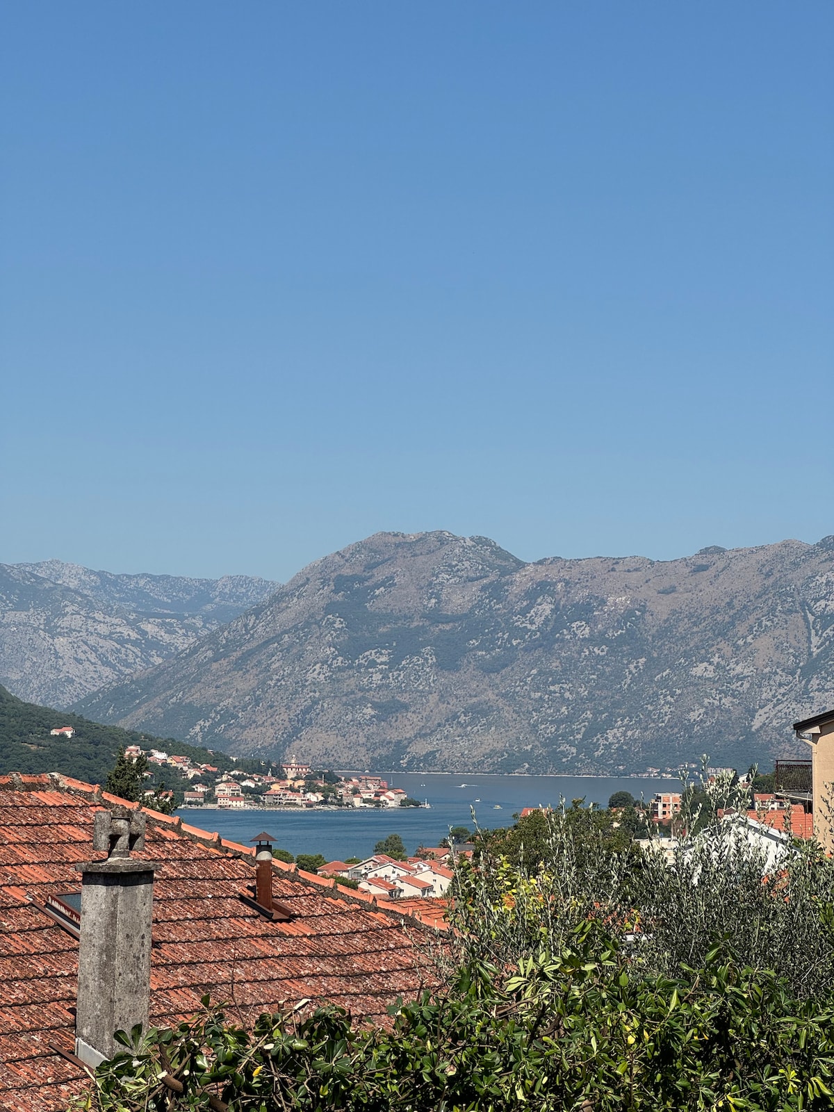 Tucked away between the Kotor Bay hills, Apartment Plazno has a breathtaking view, overlooking the whole bay, shimmering sea, the UNESCO-protected old town of Kotor, and the wall's peak San Giovanni. You will enjoy the calm and charm of this spot in Škaljari and still be able to get to the city center in just a 15 min walk. Surrounded by nature, the apartment turns out to be a perfect spot for a swallow's nest — their song will be your background music during morning coffees on the terrace.