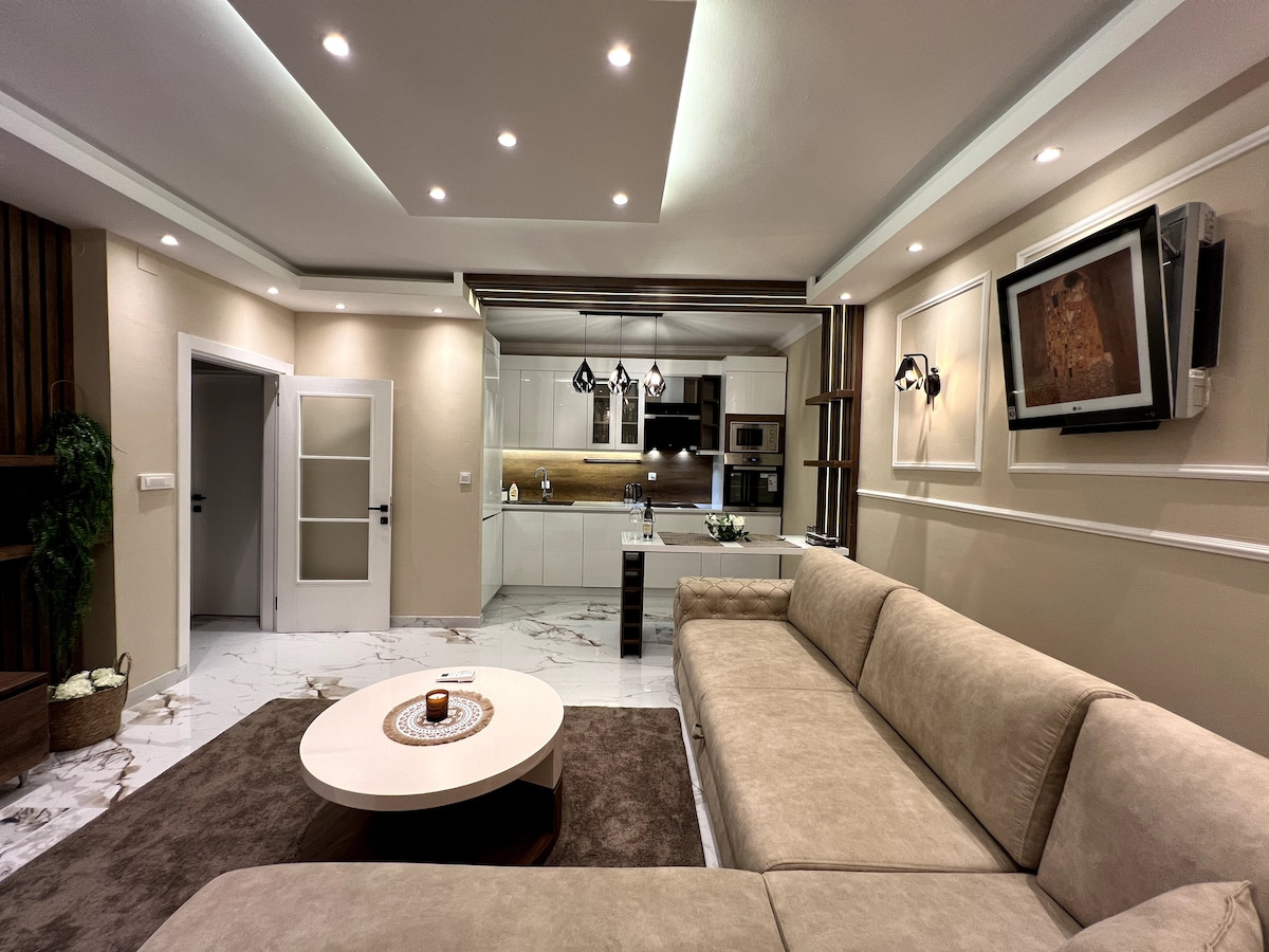 Enjoy a stylish experience at this centrally-located place. Furnished and equipped apartment with brand new high quality furniture/appliances. Located on first floor of a small residential building of 4 apartments in total, only 50m away from the sea and 200m away from Kotor Old Town. One bedroom apartment of 60m2 consists of living room, kitchen and dining area, 1 bedroom, bathroom and hallway. Garden and parking space at disposal.