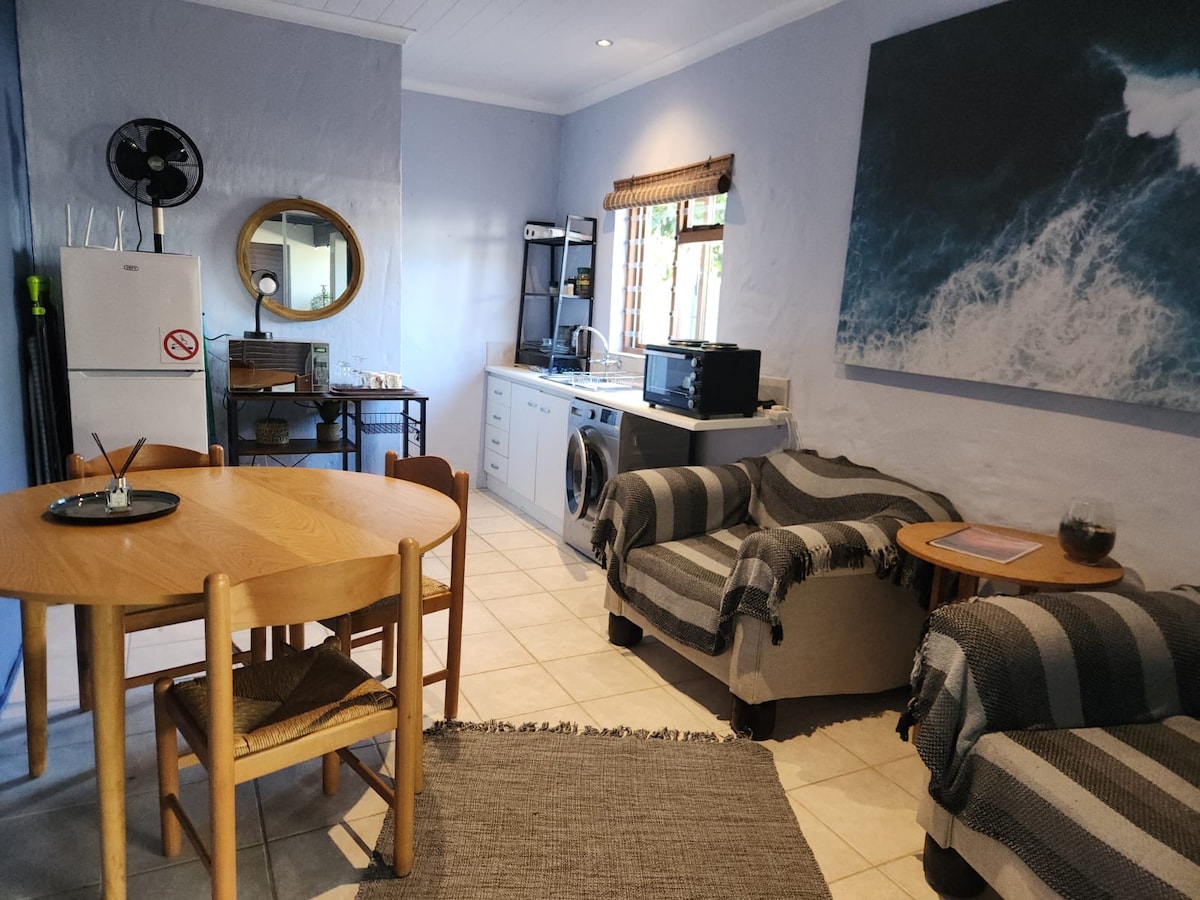 The space is a quiet, self-contained studio ideal for stop overs along the Garden Route, or short stays in Plettenberg Bay. It is light and bright, safe and secure and especially equipped for your comfort and convenience. Within close proximity (5 minute drive) to Plett’s beautiful beaches, Main Street, Robberg Nature Reserve and other attractions.