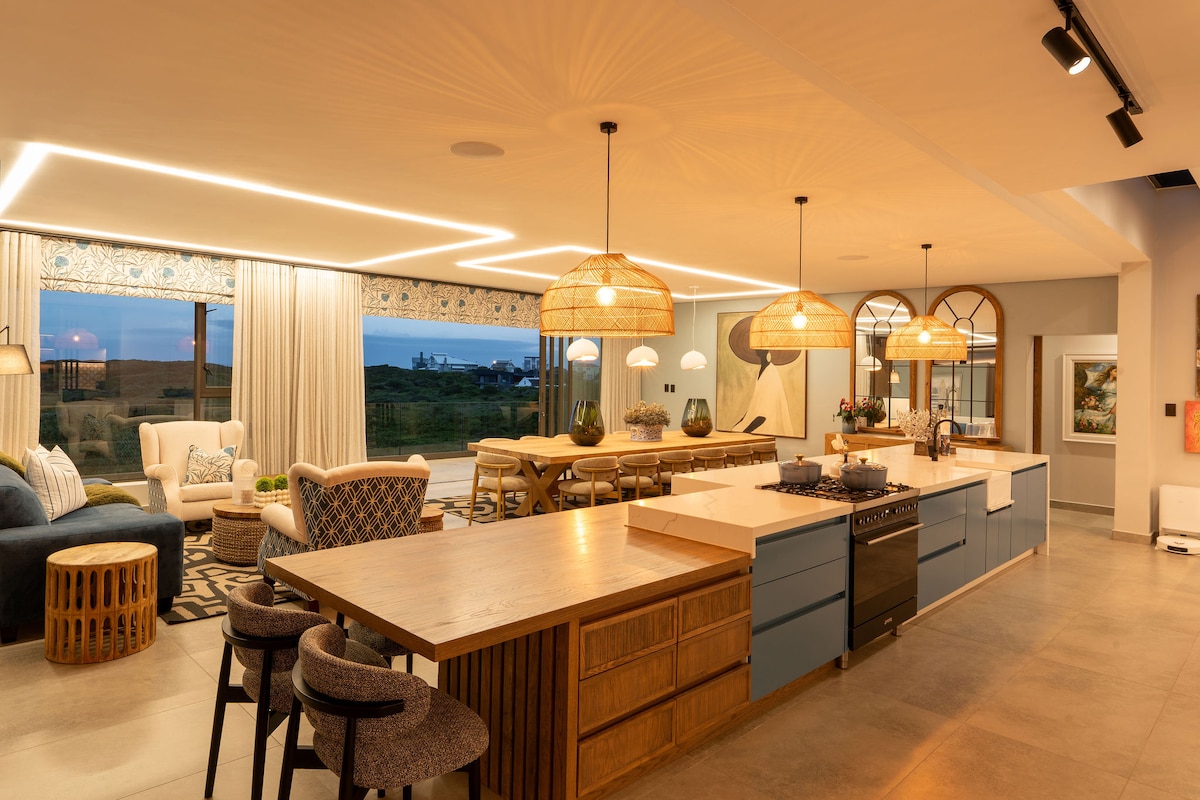 Time to treat yourself! Crisp clean,smart TV & Wifi, safe parking. Auto switch over to back up power during loadshedding plus a gas hob. Right on the Blue Flag Main beach of Jbay, find the perfect place to rest your feet.Spacious, modern & luxurious .3 bedrooms, 3 bathrooms, floor size 280 m² with a private rooftop. Panoramic views all round. State of the art appliances, fridge/freezer built-in ice maker & water filter. Comfy beds, cotton white linen & soft towels - pure bliss all