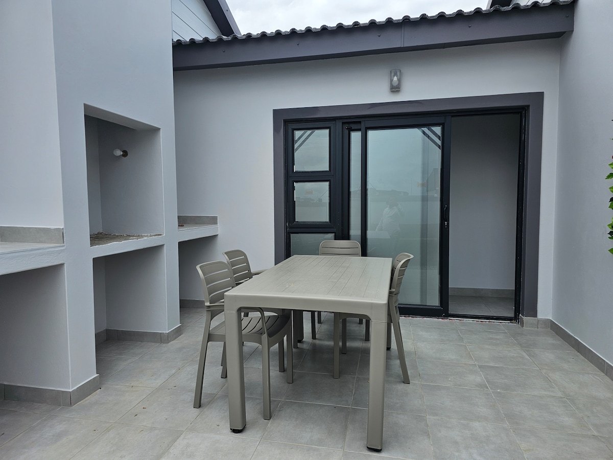 A comfortable 2-bedroom house on the ground floor beneath the main house. Single garage & one extra parking place. • 200 meters from a safe beach ideal for children, dogs, long walks, bathing, fishing, shell collecting. • Large outdoor braai area with a sea view, beautiful garden & pool. • Fibre Wi-Fi, DSTV & Netflix. • Load-shedding friendly. Gas, battery & generator back-up. • Pet friendly. • 13 minutes drive to J-Bay. • Quiet neighborhood. No LOUD MUSIC or behavior. • Live-in hosts.