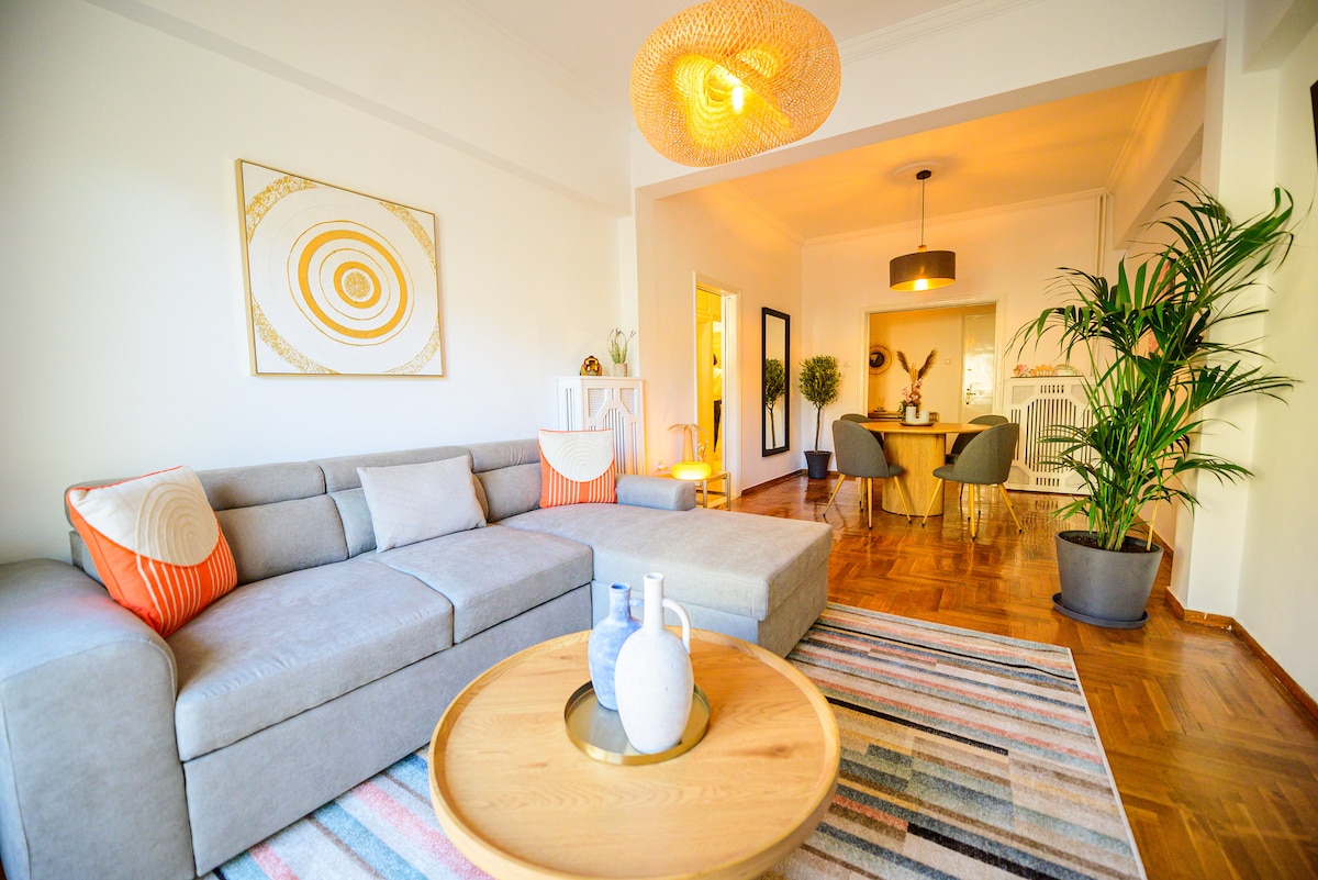 Indulge in unpretentious luxury at our newly renovated apartment in the heart of the vibrant Koukaki area. Soothing earthy color palettes, natural materials, & urban minimalism come together to create a universe of sophistication. Sleep like royalty on plush queen-size beds with fluffy pillows & premium linens. Soak in the ultimate relaxation in our luxurious bathtub. Stay connected & cool with air-conditioning, fast WiFi, & smart-TV's with free Netflix. Book now & experience the perfect escape.