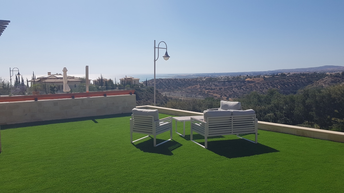 This is a luxury 3 bedrooms villa that sleeps 6 people, with a beautiful view, situated just a minutes away from the nearest beaches and the city center by car. The villa has an outdoor luxury hot tap Jacuzzi and a BBQ facilities. and a shared swimming pool. This is a nice choice for families, couples, and a group of friends who wish to have a convenient, relaxing, and peaceful stay. Located in a private/quiet area of Chloraka . Special Reduced price for 2 guests! Claim it before booking.