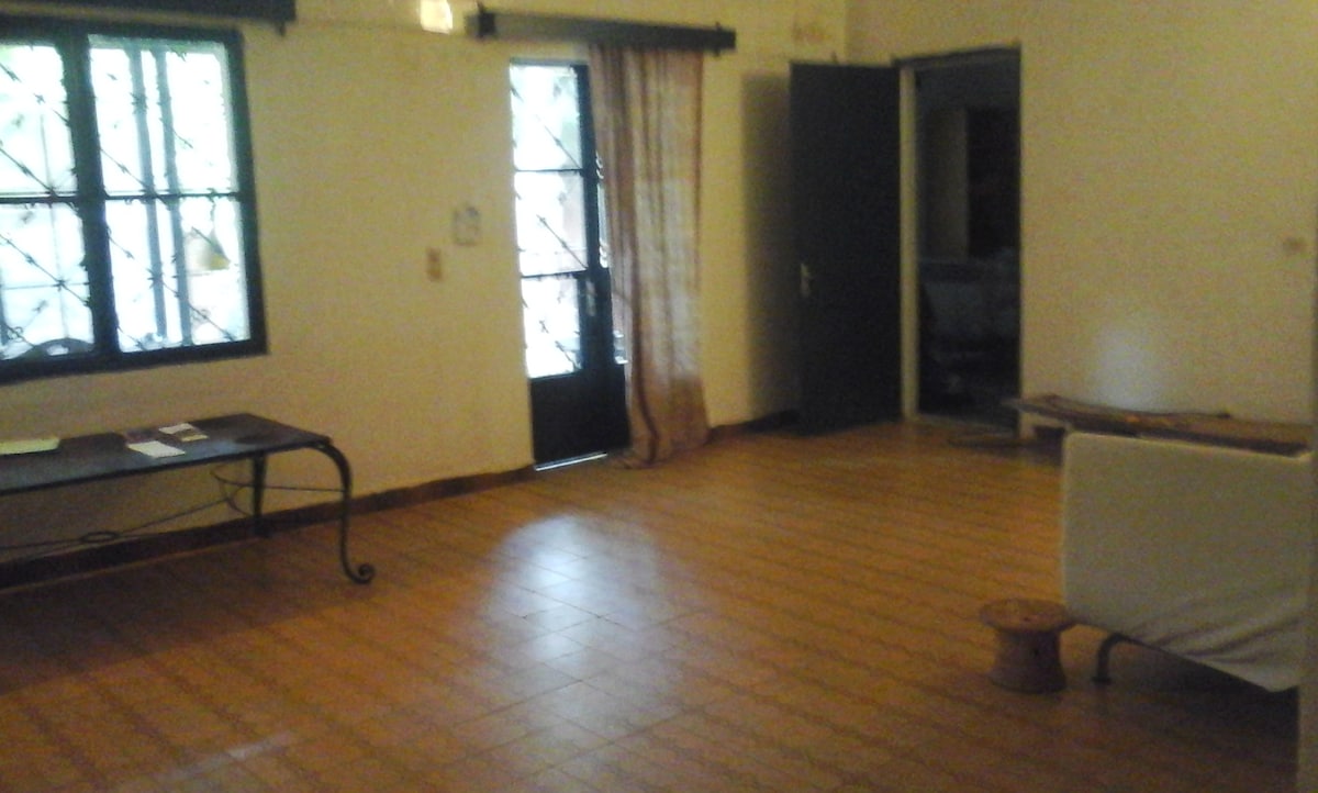 You will live on the first floor of a beautiful stabilized mud brick duplex located in Sotuba ACI. It is composed of a large living room with patio (interior garden), a master bedroom with a small private living room and a restroom as well as two other independent bedrooms sharing a shower, a fully equipped kitchen and a dining area. The living room overlooks a cute garden with bougainvilleas and a swimming pool. The pool is for shared use if the floor is occupied during the same period.
