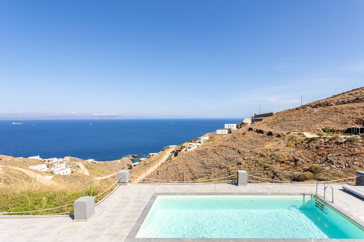 A modern, fully equipped villa with private pool & clear view to the Aegean blue, will offer you unforgettable moments of relaxation. The spacious swimming pool area is the ideal place to enjoy your favorite drink, while gazing upon the magnificent sunsets of Kea! The atmosphere is idyllic: romantic beaches, sparkle gold sand & clear blue sky will take your breath away. The area has everything you might need for a fancy or a leisurely vacation: restaurants, bars, taverns etc Free Wi-Fi & parking