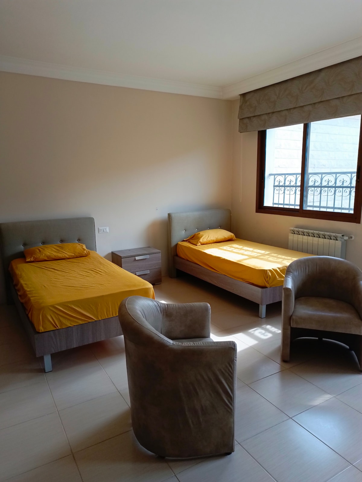 Nested in the heart of Ras Maska, a beautiful and peaceful village 5 minutes from Trípoli. This apartment is in a new modern exclusive villa. It has 24/7 electricity up to 20amp, hot water and WiFi. Ideal for business trips, families, couples and group of friends who want to stay in a relaxing area which at the same time is very close to the city and enjoy the great sea and mountain views.