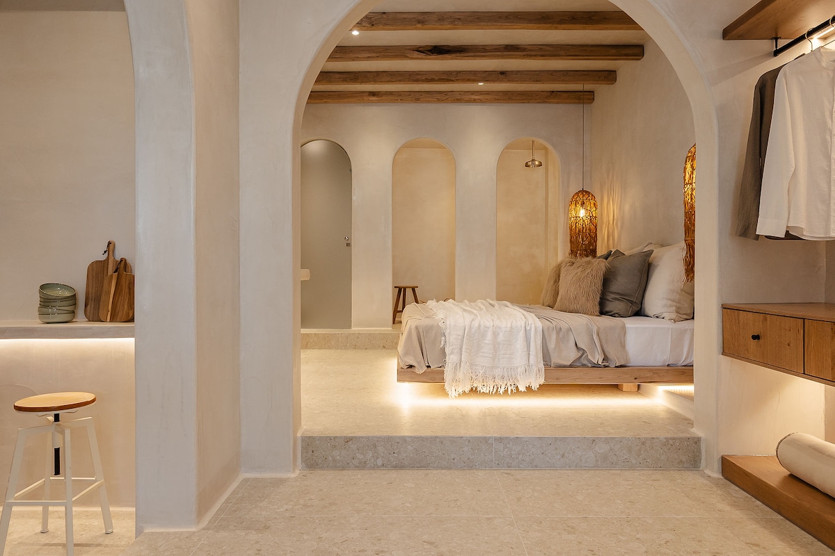 Nested in Naxos Town with stunning views out to the Aegean Sea we offer out guests the opportunity of an exclusive upretentions relaxing experience. Within easy reach from island’s famous PORTARA and Venetian Castle. Our philosophy is to offer first-rate hospitality coupled with unrivaled privacy. Much more than a home our deluxe suite offers supreme comfort combined with elegance style and unique Greek hospitality. it’ s warm minimal lines create a relaxing atmosphere.