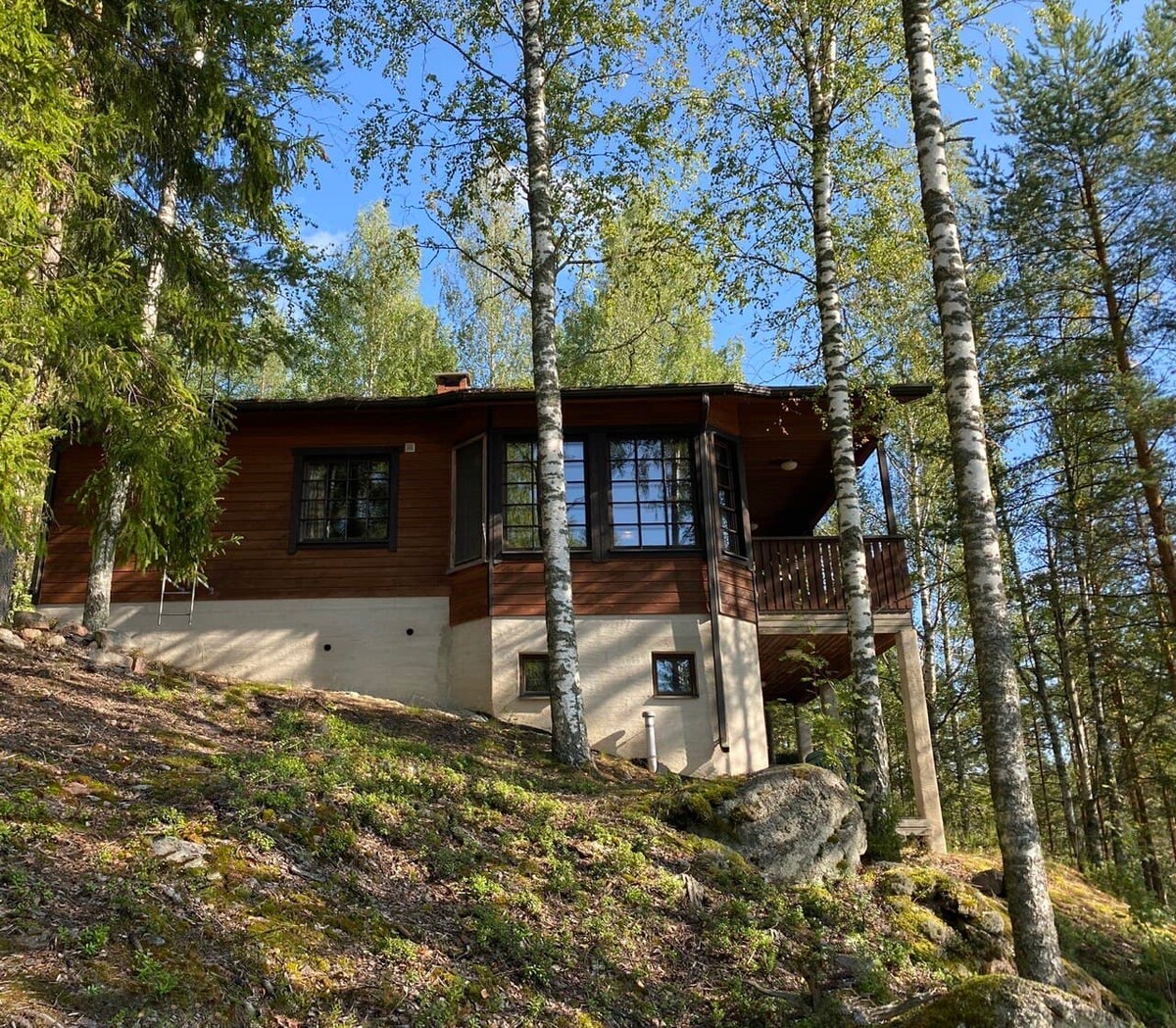 Ylellinen vuonna 2022 rakennettu pieni huvila kristallinkirkkaan Vuohijärven rannalla, Repoveden kansallispuiston läheisyydessä. Kaikissa huoneissa on suuret panoraamaikkunat ja huikeat näkymät luontoon ja järvelle. Mökki on varusteltu vaativaankin makuun kaikilla mukavuuksilla, pohjoismaisilla design-huonekaluilla ja nykytaiteella. Puulämmitteisestä saunasta on vain muutama askel loivasti syvenevälle hiekkarannalle ja isolle laiturille, jolta pääsee pulahtamaan järveen ja talvella avantoon!