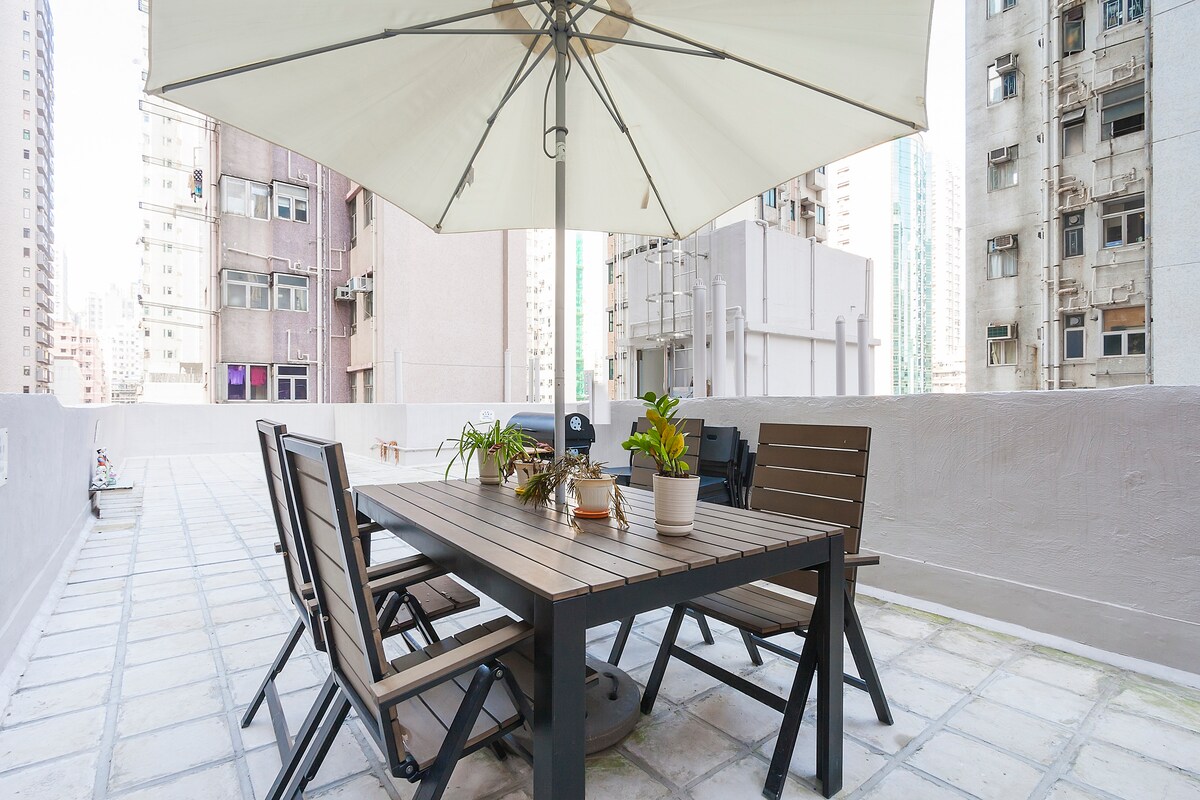 At just 10 minutes from Central! Enjoy a vibrant neighborhood filled with diverse restaurants and local shops, all within walking distance. The MTR is only a 2-minute stroll away, and the tram is nearby for easy city exploration. Our cozy studio features ample storage, a fully equipped kitchen, and laundry facilities, making it perfect for short or long stays. Relax on the terrace or bring your pets along this welcoming space is designed for your comfort and convenience. Book your stay today!