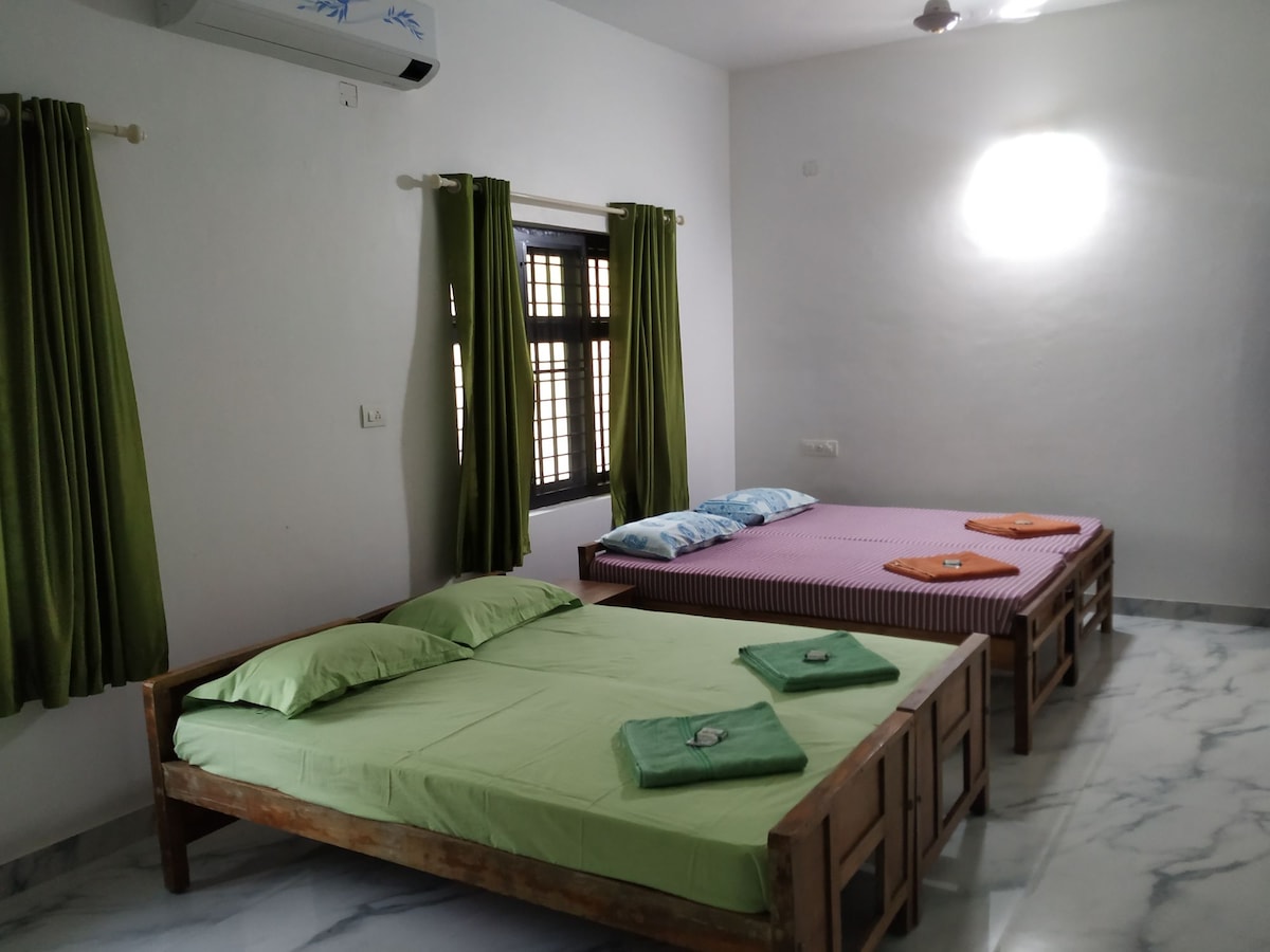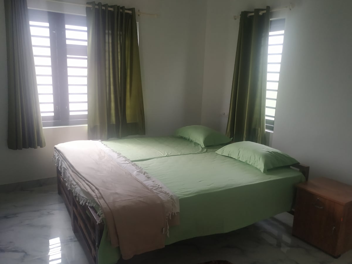 You’ll be charmed by this adorable place to stay. We do our best to make your stays most comfortable at affordable prices. This property is above my house and has an independent entry. Outside the room, my mother maintains a small terrace garden. around the house also, it is fully covered with lush greenery. We do provide breakfast on demand (not complimentary). There are grocery stores and hotels nearby. There is one river at a walkable distance. Bus services are available all the time.