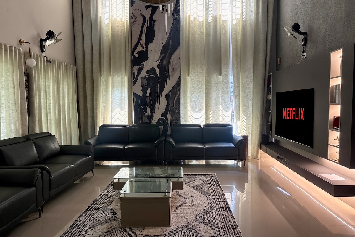 If you are looking for a convenient and comfortable accommodation for short stays, our fully furnished daily rental house offers the perfect solution. Key Features: 1. Air conditioned bedrooms 2. Well-equipped kitchen & work area 3. Spacious dining hall and living room 4. Bathrooms with essential toiletries. 5. Wi-Fi, Cable TV, CCTV 6. Fridge 7. hot water 8. Fully automatic washing machine 9. Parking space upto 12 cars.