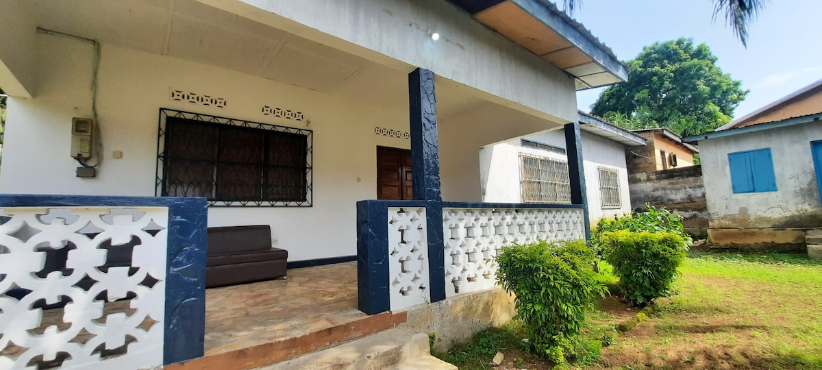 Location à Kpalimé de la Villa Caliendi, avec jardin et grande terrasse couverte, meublée, propre, moderne, sécurisée (cloture haute, portes métalliques) grands arbres, garage privatif couvert (2 voitures), à l'entrée de la ville. Idéal pour les familles. Possibilité de louer en supplément dans l'enceinte une chambre séparée très bien équipée