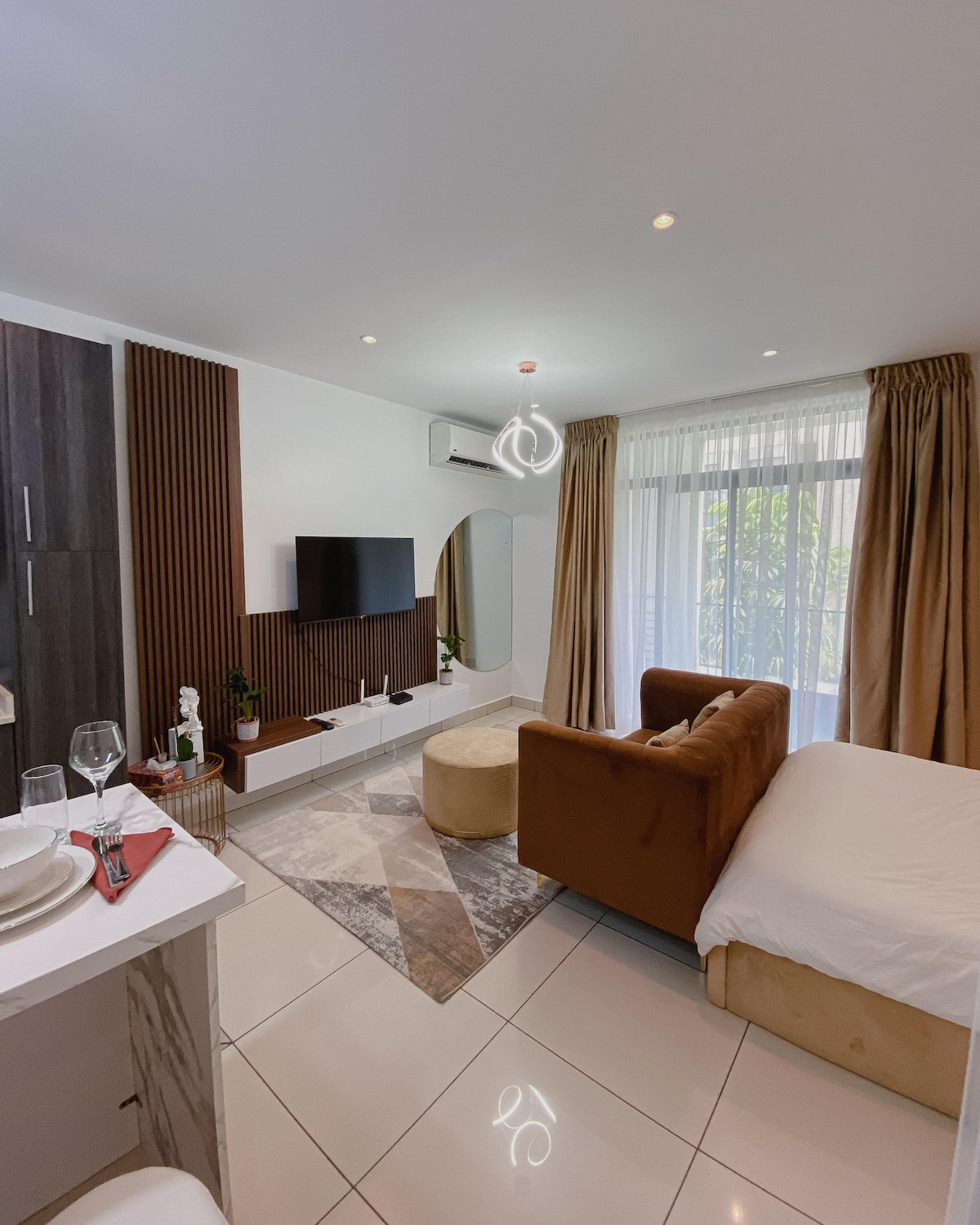 Enjoy a stylish, comfy experience at this centrally-located place. This newly nested Studio Apartment located in the heart of Accra, which is 5 minutes’ drive from the airport. This apartment offers a tranquil residential vibe alongside a quick easy access to the down-town areas. Admire the crisp, contemporary décor of the open-plan living space.