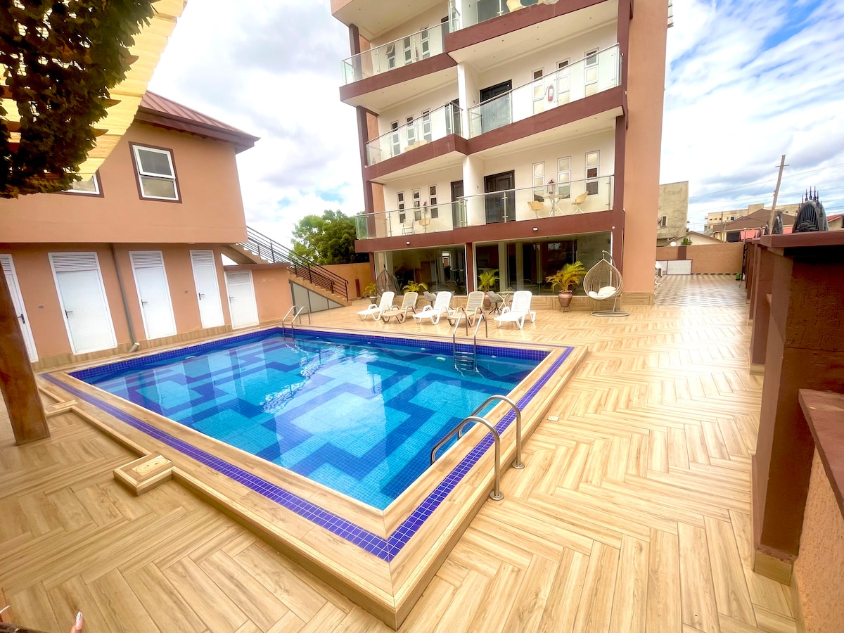 Hosted by: Isaac & London eye luxury home and Apartments accredited. This elegant 4-Bedroom En-Suite House features: ✨ 2 Spacious Living Areas ❄️ Fully Air-Conditioned Rooms 🏊♂️ Private Swimming Pool 🧹 Regular Cleaning Service ⚡ Standby Power Supply 🔊 LG Bluetooth Sound System 📺 Smart TVs + DStv 🌐 High-Speed WiFi 🧺 Washing Machine 🚗 Airport Pick-Up & Drop-Off Service Located just minutes from Combos & Casa Event Center,Fresh & Fit Gym & Restaurant,Nanakrom Melcom.