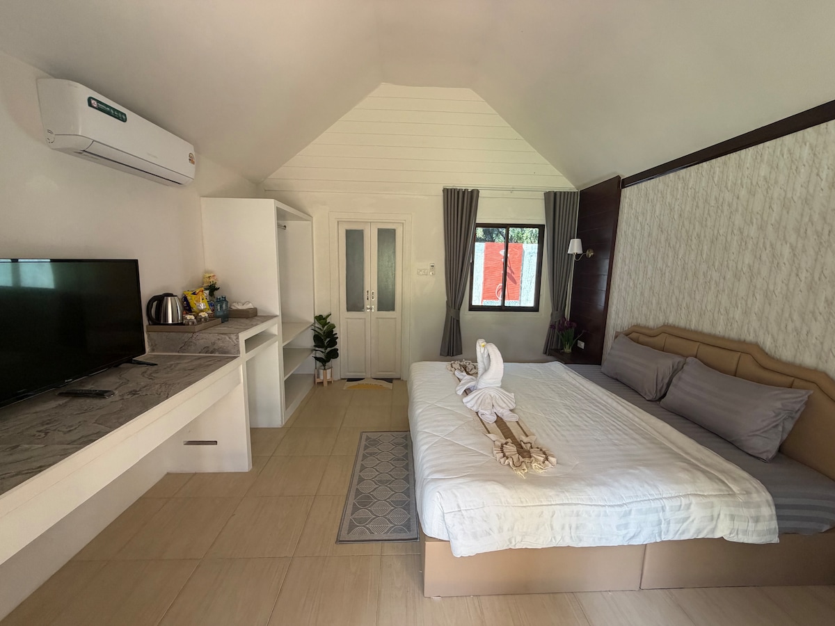 Cozy wooden cabin just steps from Klong Dao Beach! Perfect for families or friends (up to 3 guests). Features 1 double bed + 1 single bed, A/C, private bathroom, Wi-Fi, and a relaxing natural vibe. Enjoy peaceful island living with comfort and charm at