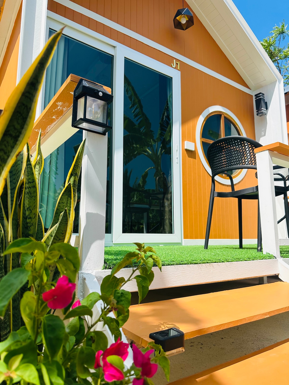 a modest thai-style wooden bungalow set in a peaceful garden, with a spacious terrace for slow mornings and quiet evenings. simple, airy, and surrounded by greenery. located in a calm area yet very central — walking distance to beaches, cafés, and local restaurants. the bungalow sleeps 1–2 guests with one queen-size bed and is fan-cooled (no air conditioning), inviting a slower, more natural way of living.