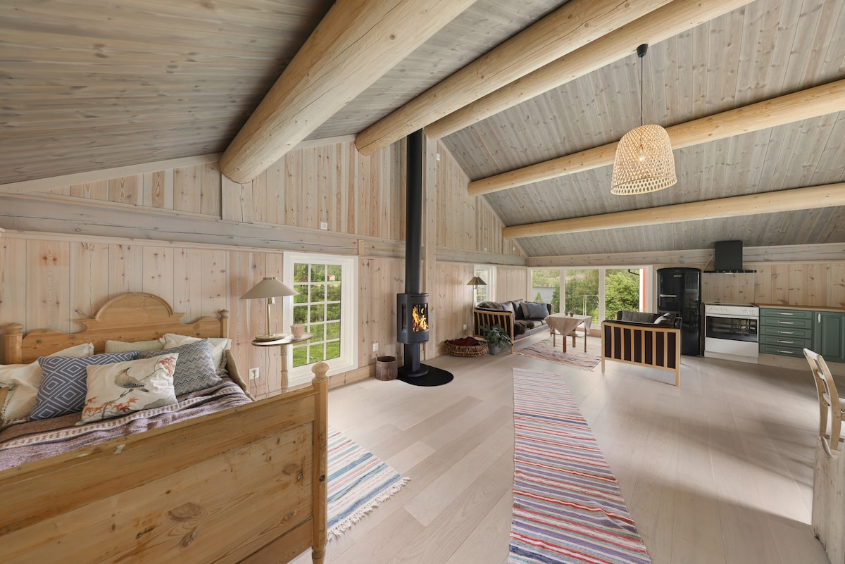Tucked away in nature, directly by a quiet lake, this cosy cabin offers a peaceful retreat. Wake up to views over the water, breathe in fresh forest air and let everyday life slow down. Inside, a warm atmosphere awaits with a fireplace and some firewood included for cosy evenings. Ideal for couples or families. Swimming, fishing and walking start at the cabin. Kragerø is 30 min away, Porsgrunn 50 min, skiing in Gautefall (1h10) and Vrådal (1h30). A perfect, cosy place to truly unwind.