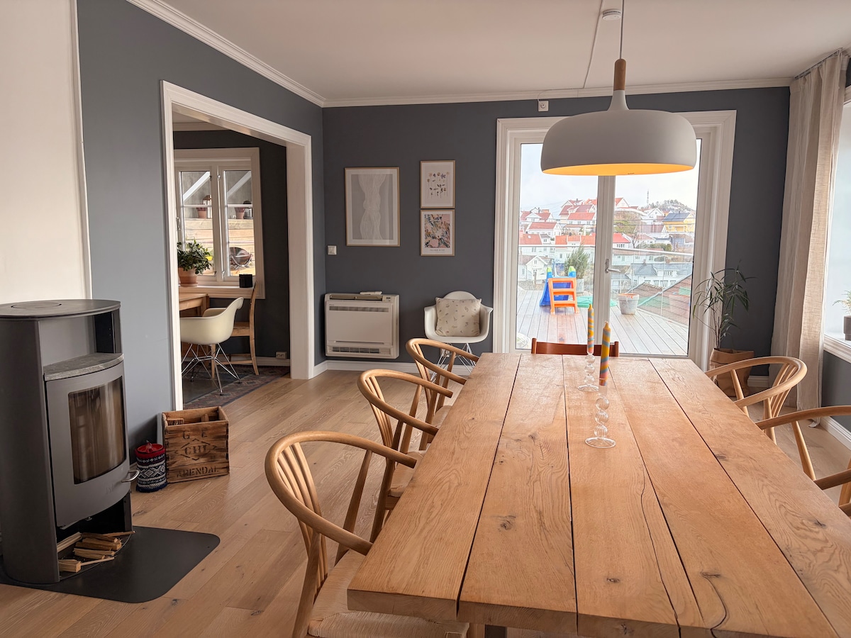 公寓位于克拉热罗( Kragerø )顶部,设有宽敞的露台,阳光充足,步行仅需20分钟即可抵达市中心和海滩。