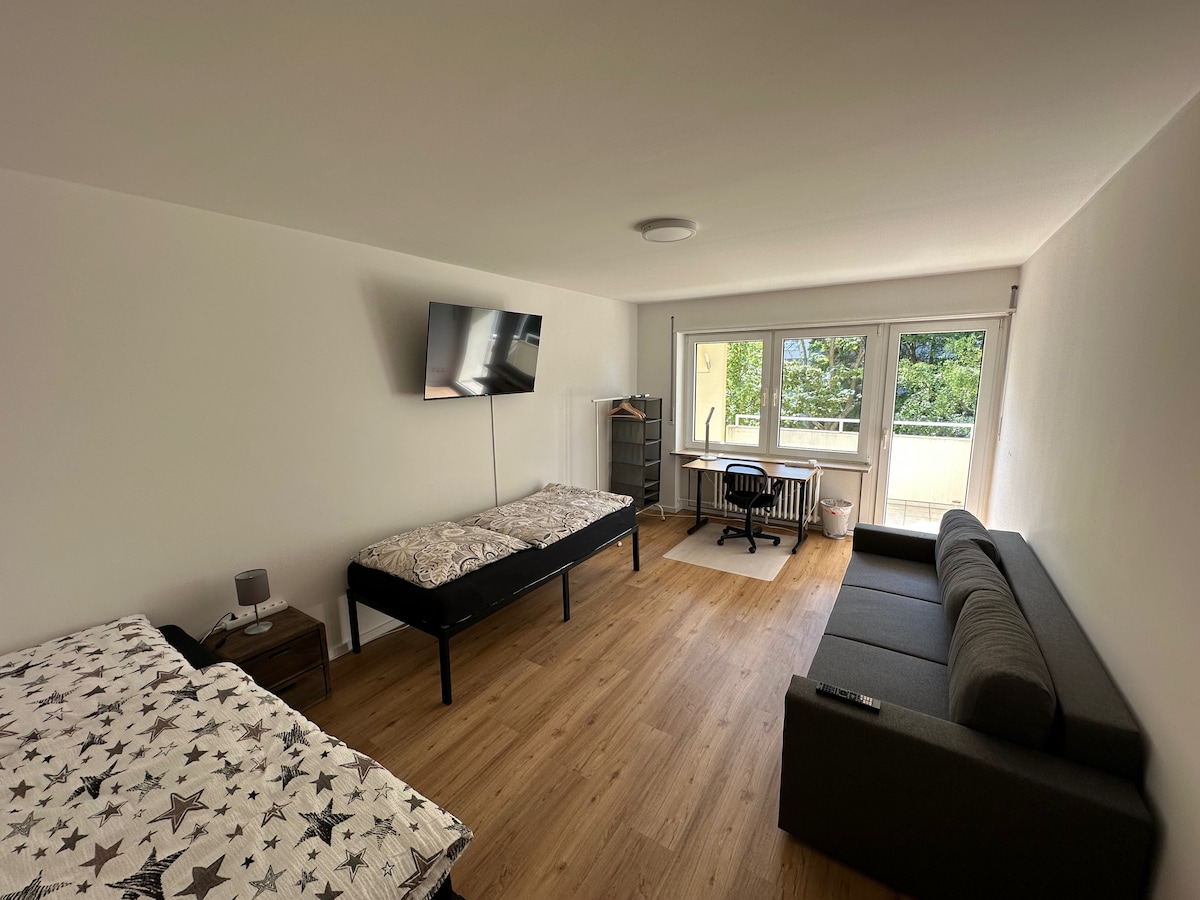 Ehemalige Kinderzimmer/Partykeller "kein 5 Sterne Hotel ",funktional und gut. Nichtraucher. Durchgang Küche nur 1,83 Ca1300 Meter bis Technik Museum/Schwimmbad, 1600 Meter bis Dom/Stadtmitte, viel Grün, der Rhein und Altrhein sind ganz in der Nähe . Ein Gast meinte ich soll den Rheinradweg noch erwähnen, der auch sehr schön ist. Ich habe eine abschließbare Garage mit Strom ,für Fahrräder und Motorräder. Einkaufsmöglichkeiten und Gaststätten gibt es genügend. Nur bedingt für Allergiker geeignet.
