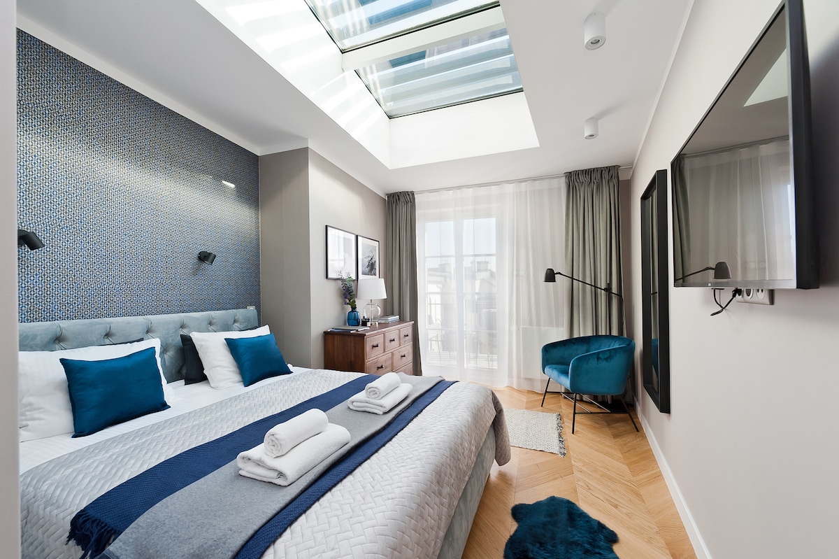 Delve into Cracow's Old Town from this two story penthouse apartment. Revive in a bright, air-conditioned and upscale interior. Have a freshly grounded coffee and admire city panorama with historic buildings from one of two private rooftop terraces. This space is absolutely unique as are the views that it provides. PLEASE NOTE: In our apartment, it is strictly forbidden to organize any kind of parties/special events.