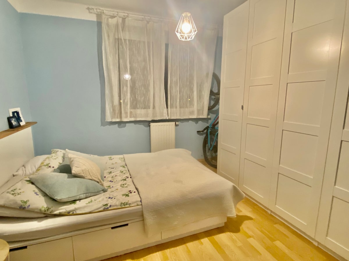 Welcome to our cozy apartment in Crakow! Located just 15 minutes from the city center, with easy access to public transport. Enjoy the serene surroundings with plenty of greenery and a nearby lake with a beach and sailboats. We provide free underground parking and excellent connections to the airport. Perfect for a peaceful stay with the convenience of urban amenities close by. spar express, cafe 130 m lidl- 700 m From Krakow Balice Airport: 34 minutes by taxi 54 minutes by public transport
