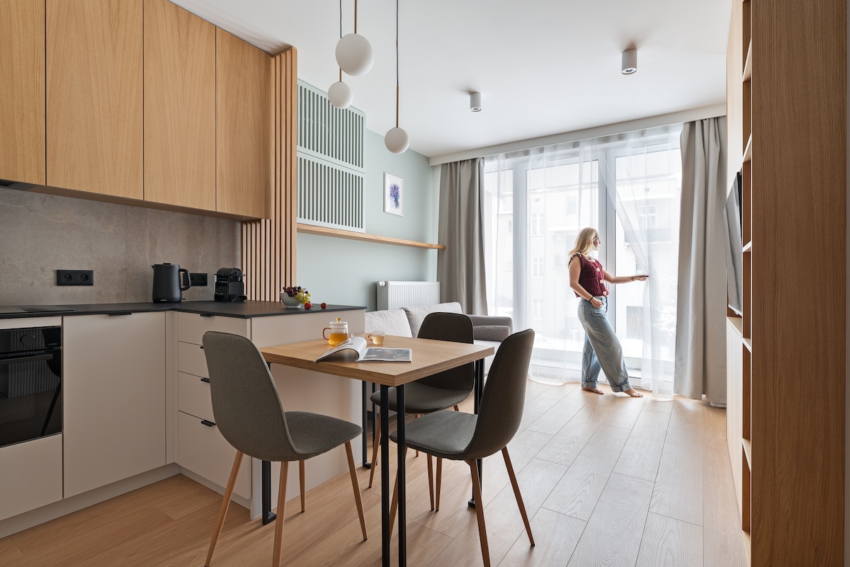 时尚公寓,靠近Tauron Arena、公园、家庭办公室