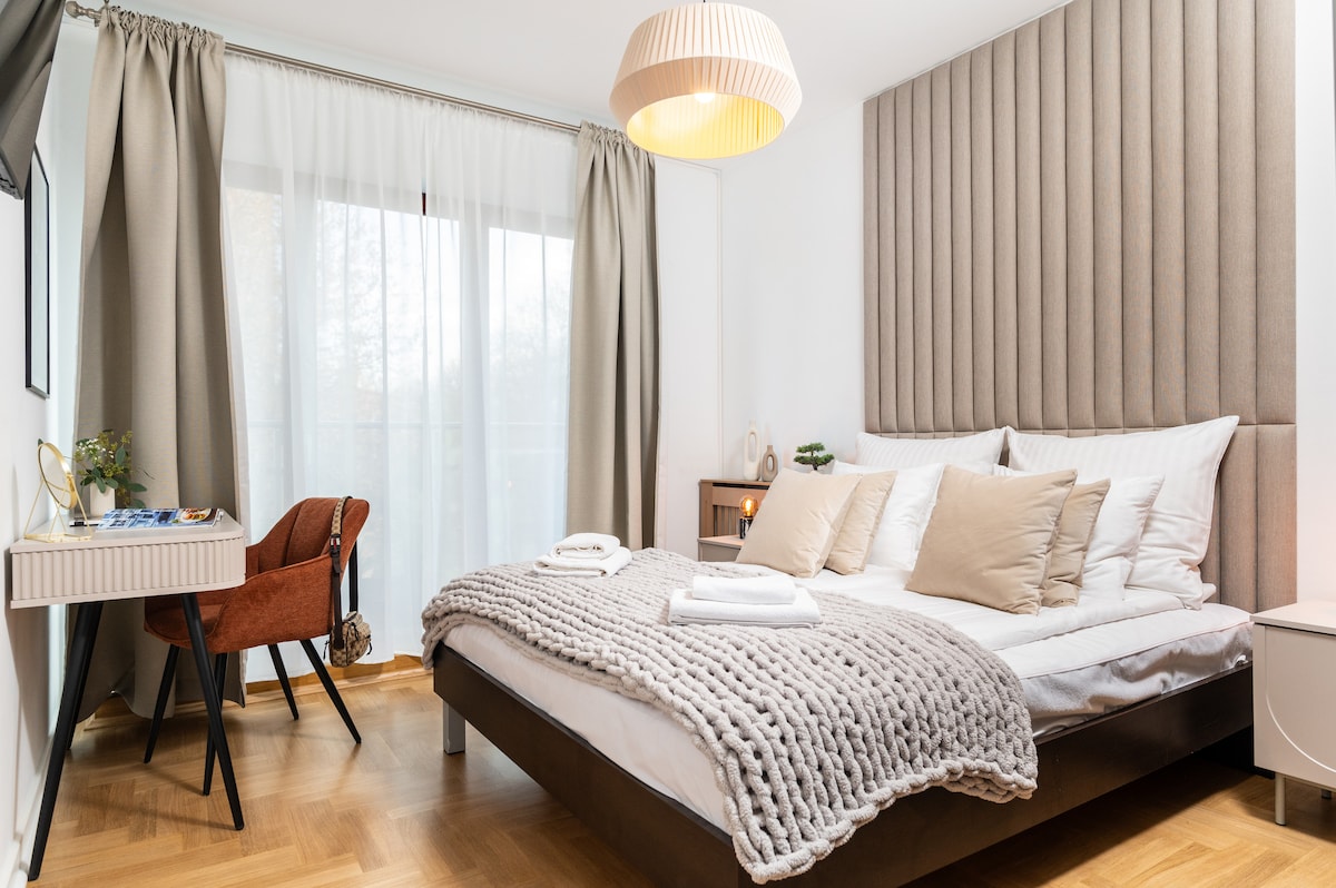 A unique apartment with a jacuzzi, sauna, and private garden – the perfect place to relax! The main highlights include a private jacuzzi, sauna, and a cozy garden – perfect for morning coffee or a peaceful evening chill. Guests also have access to free underground parking. An ideal choice for a romantic weekend or a luxurious getaway close to nature.