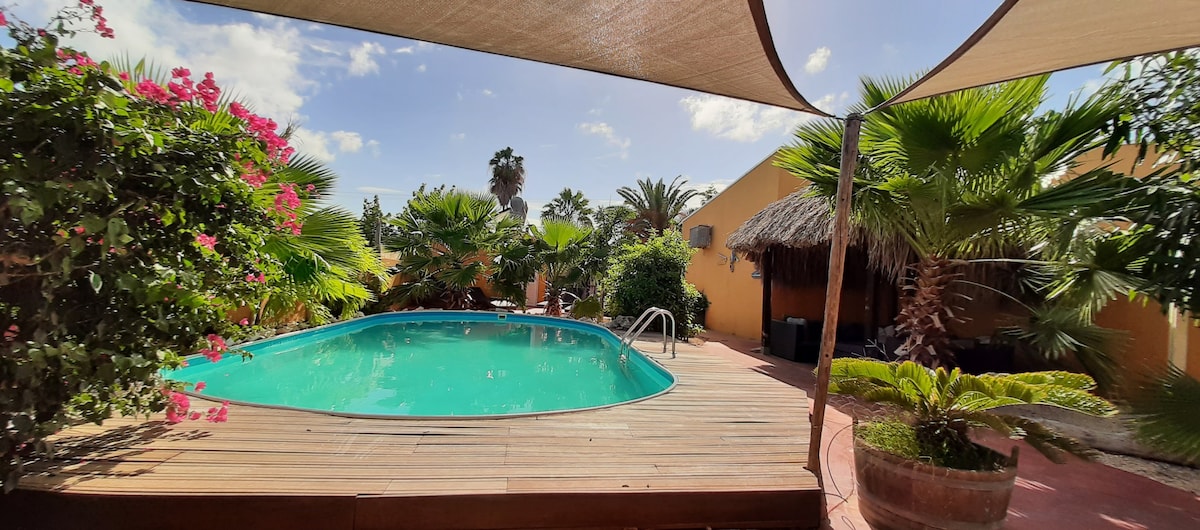 Surrounded by lush gardens and an oversized, mosquito free screened porch, this roomy studio comes complete with king size bed. The neighbourhood contains larger villas with residents & visitors. Two pools & the sea are only a 5 min walk away . Lockers are dedicated to store your gear & located in the parking area. Dedicated wifi (40mbs) and work space for the traveler that wishes to mix work with pleasure. Gardens are teaming with birds & iguanas. Onsite pizzeria plus a high end restaurant