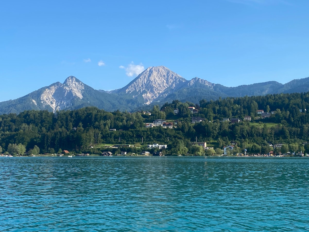 Die Wohnung (50m2) befindet sich im 1. Stock, verfügt über einen großen Balkon mit spektakulärem Blick auf den Wander- und Schiberg Gerlitzen. Es gibt Spazierwege durch romantische Wälder, an der Drau entlang, zum Faakersee (2km) und Silbersee (2 km). Eine gemütliche Küche, räumlich durch Stiegenhaus von Schlaf/Wohnbereich mit Bad getrennt, ist voll ausgestattet, schnelles WLAN und gratis Parkplatz direkt vor dem Haus stehen zur Verfügung. Sehr ruhige Lage, für Kinder ebenfalls geeignet.