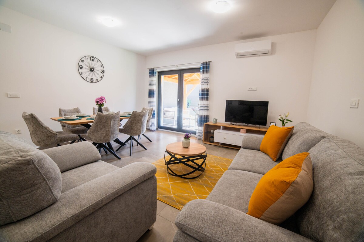 Surround yourself with style in this standout space. This modern 4 star villa is situated on a peaceful hill above Terme Tuhelj and has an outstanding view of the surroundings. Apartment is located on ground floor and has everything You need for a perfect vacation and more. Fully equipped kitchen with oven, dishwasher and microwave with all the accessories. TV with 100+ programs and Netflix. Outdoor terrace with pergola, hot tub, barbecue and a beautiful view will get You relaxed every time...