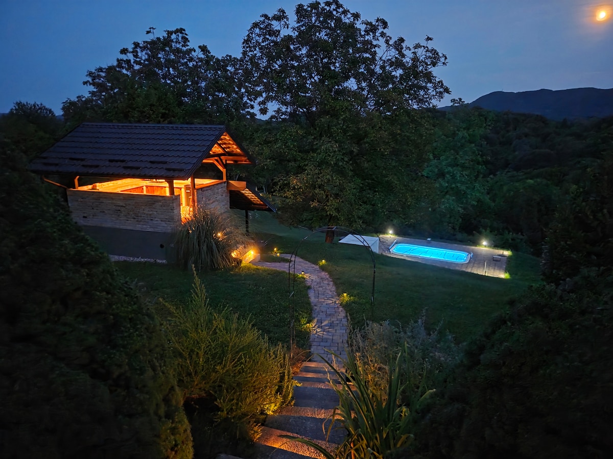 Nature, Views + BBQs: Vintage Cottage near Zagreb An oasis of calm in the rolling hills north of Zagreb! Our open-space holiday home offers the perfect blend of privacy and community, situated within the magnificent Green Hills Homestead. Set on a sprawling 10,000-square-meter estate, this property is your perfect escape from the city hustle. Traveling with a larger group, up to 12 people? Rent both our Cottage and Glamping tents to have the entire 10,000m² estate and pool all to yourselves!