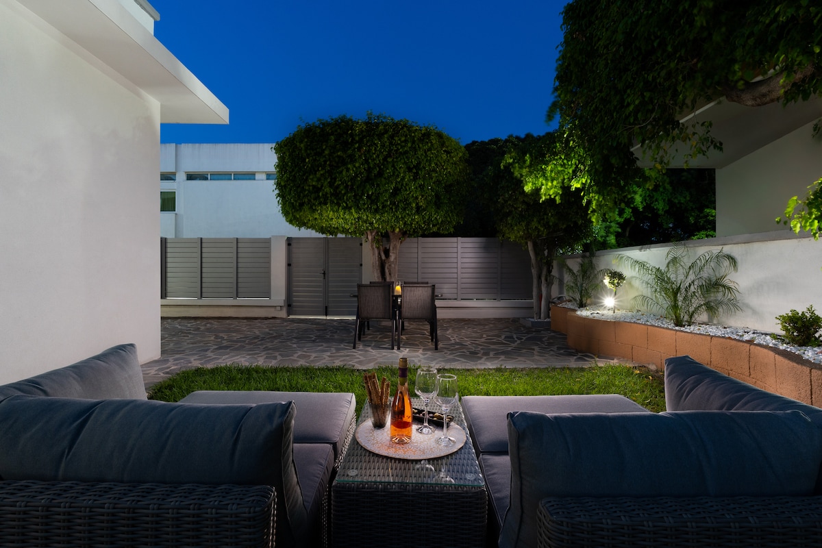 The luxurious pool-villa is set on the residential area of Ialysos beachfront (±500m away) and provides an ideal gateway for families, couples and groups (up to 6 - or 7 in special cases - people), who seek a unique and relaxing holidays, while at the same time want to be near everything, since it is conveniently located very close to the City of Rhodes. Thanks to its location the villa offers privacy and pool relaxation while you can simultaneously be in Rhodes city Center in just 15 minutes.