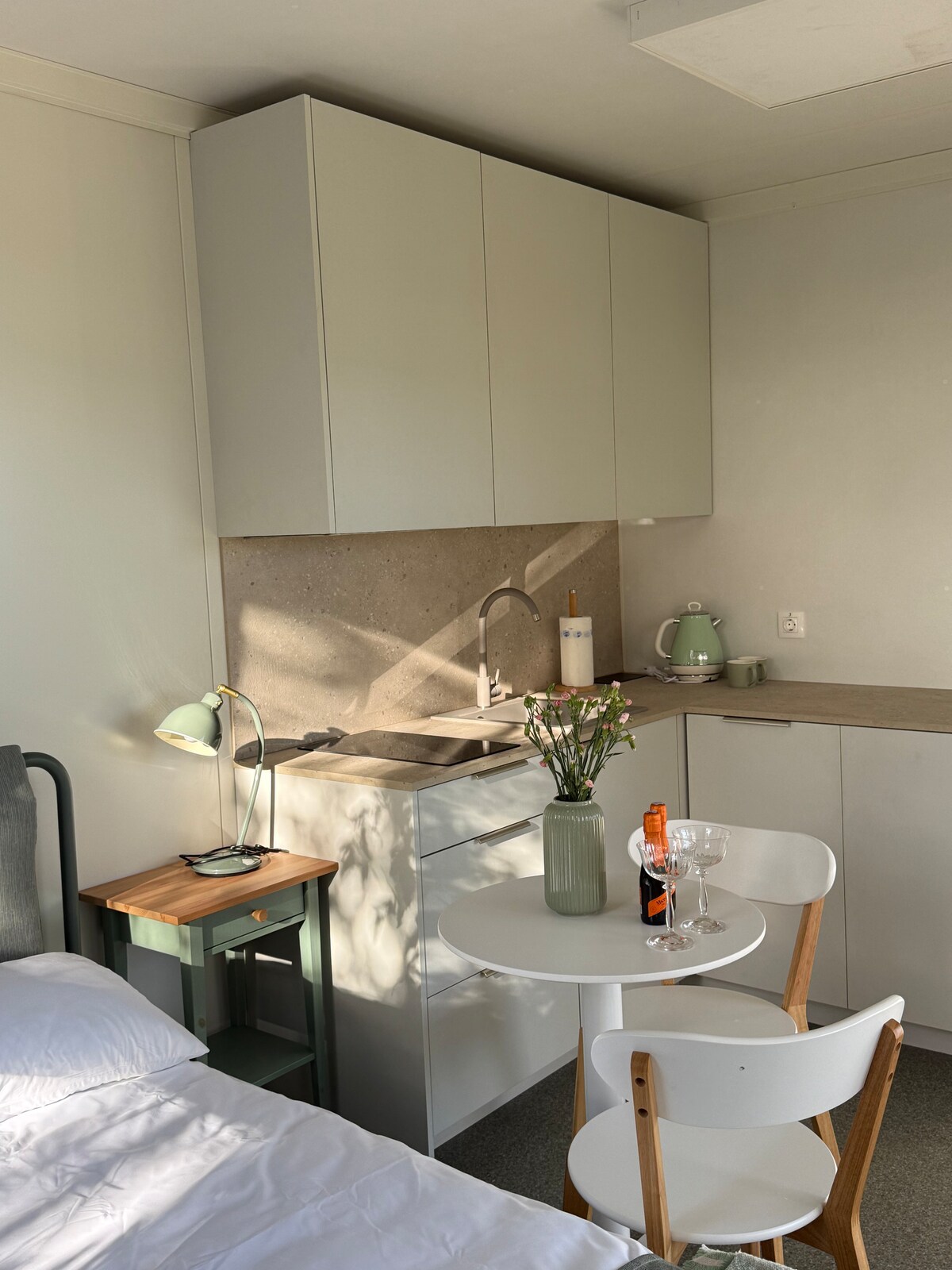 Looking for a peaceful yet active getaway in nature? This stylish cabin by the pond is ideal for couples, families, or friends. Large panoramic windows, a terrace for morning coffee, a private sauna, BBQ grill, and fast Wi-Fi. Just 5 min to 313 Wake Park and 5 km to the Baltic Sea.