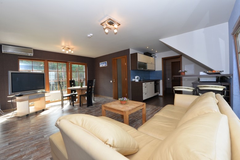 The apartment in villa "Medeina" is located in the Sventoji village of the Palanga. It is only 750 m from the Sventoji Center and 1600 m to the beach. A peaceful and quiet area, perfect for families with children.