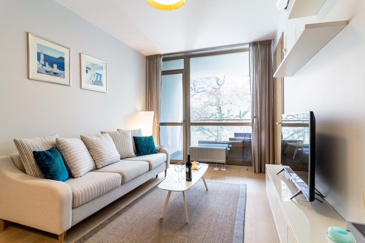 Apartament in "Hill Garden" residence. When furnishing the apartment one of the main considerations we had was to combine functionality and style. The place is ideal both for a couple and a family, with a separate bedroom, and a sofa-bed in the living room that takes just seconds to prepare – we got surprised ourselves how easy it is to fold and unfold. We are looking forward to welcome you in Kunigiskes, and we are convinced you would be eager to come back!