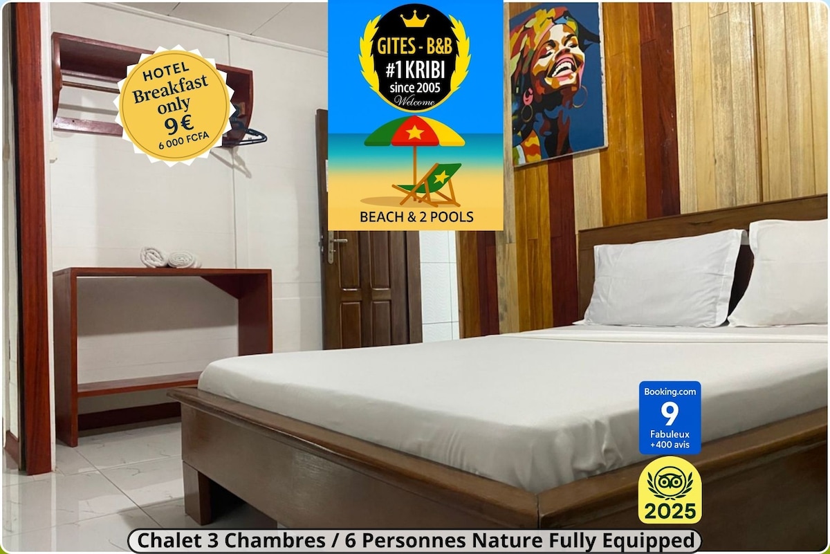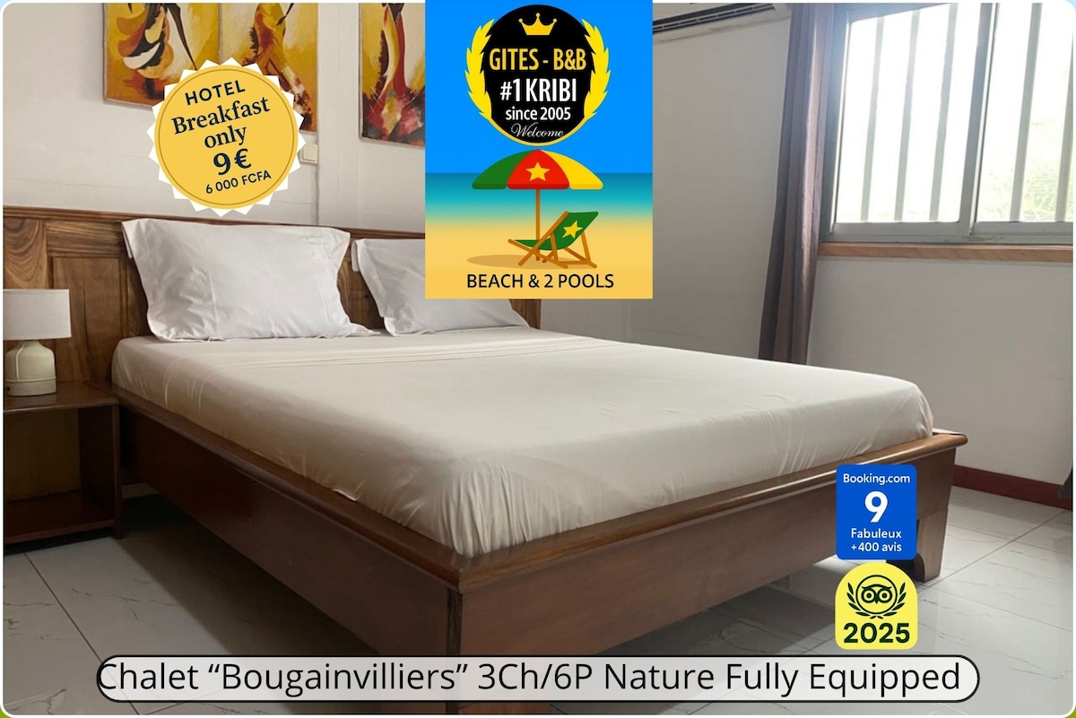 Enjoy an unforgettable stay at Les Gîtes de Kribi. A family-run hotel and restaurant where we welcome you with the warmth of the tropical sun. Experience the holiday you've dreamed of: comfortable and varied accommodations at affordable prices, nestled between the sea, the forest, and fine sandy beaches. From the moment you wake up, the sea and warm smiles await you. At the restaurant "Les Pieds dans l'Eau," our chef offers cuisine bursting with local flavors.