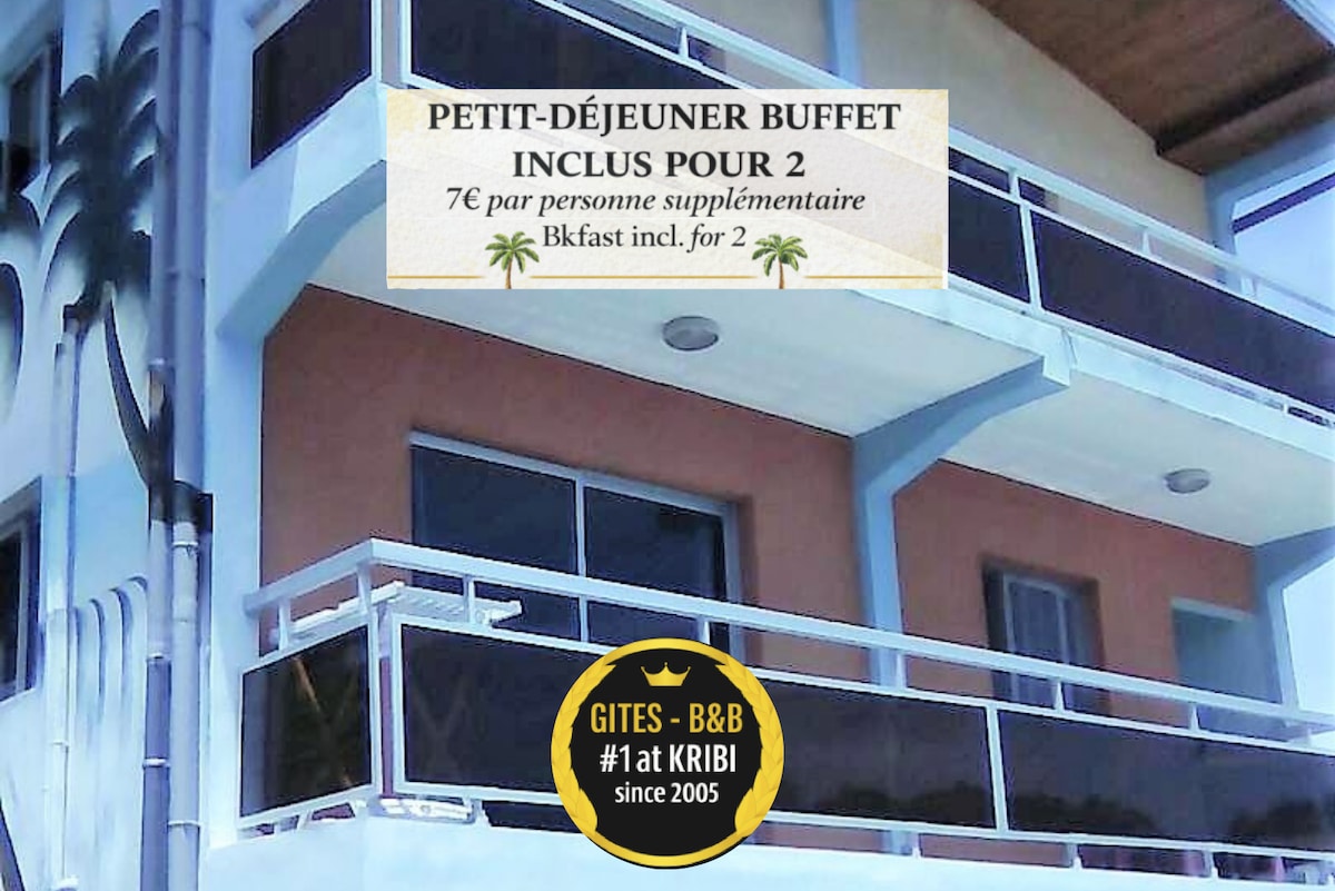 résidence de 6 appartements à proximité de la plage et de la ville de kribi au cameroun. la résidence dispose d'une piscine privée, les 6 appartements ont chacun un salon, une cuisine équipée, 2 salles de bain, 2 chambres a lit double. Le prix afficher de la nuitée est celui d un appartement de 02 chambres.